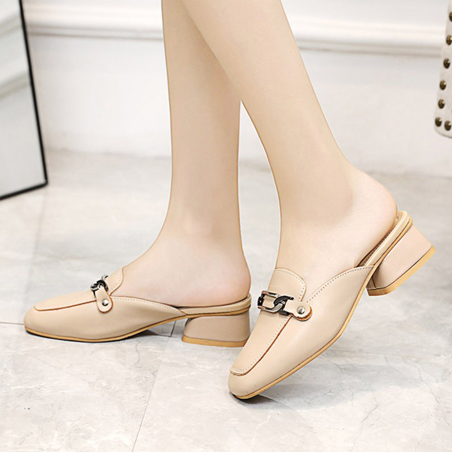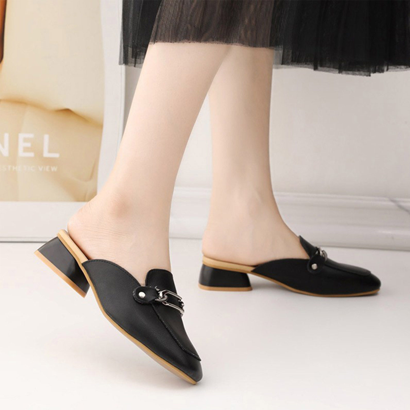 小码拖鞋女夏外穿2026春新款粗跟包头半拖时尚复古配裙子防滑凉拖