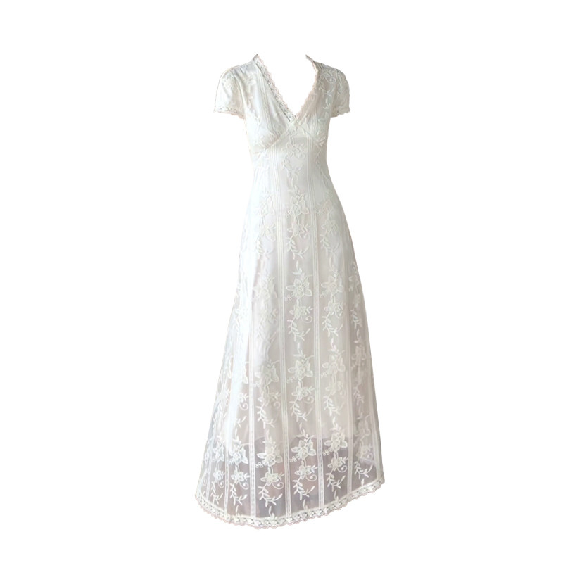 大码胖MM法式设计感V领蕾丝提花收腰连衣裙夏季新款显瘦A字中长裙