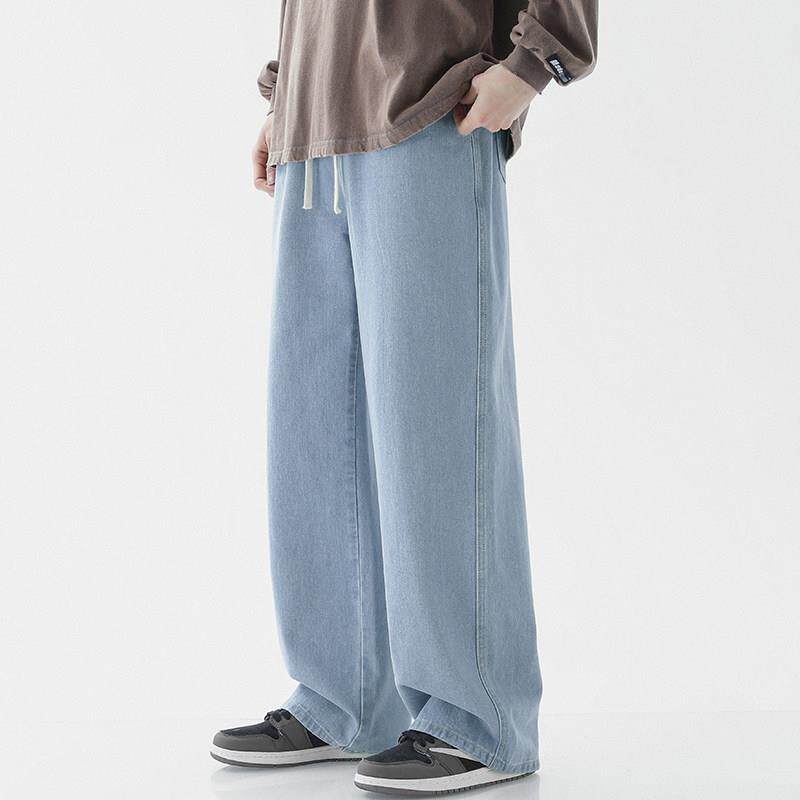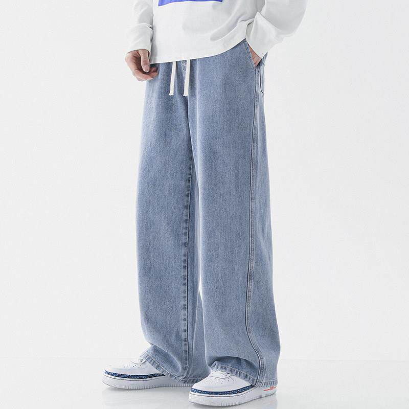 311线报网描述:男生宽松阔腿牛仔裤浅蓝色春夏季青少年直筒