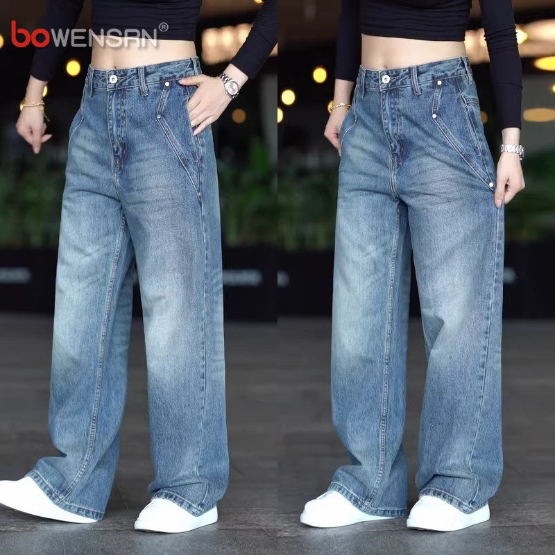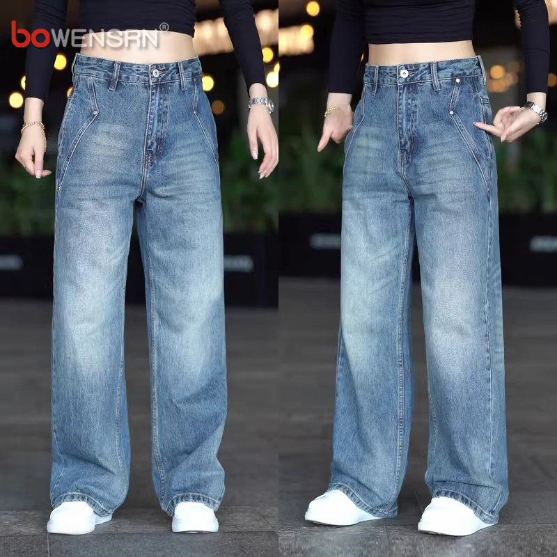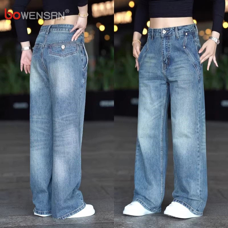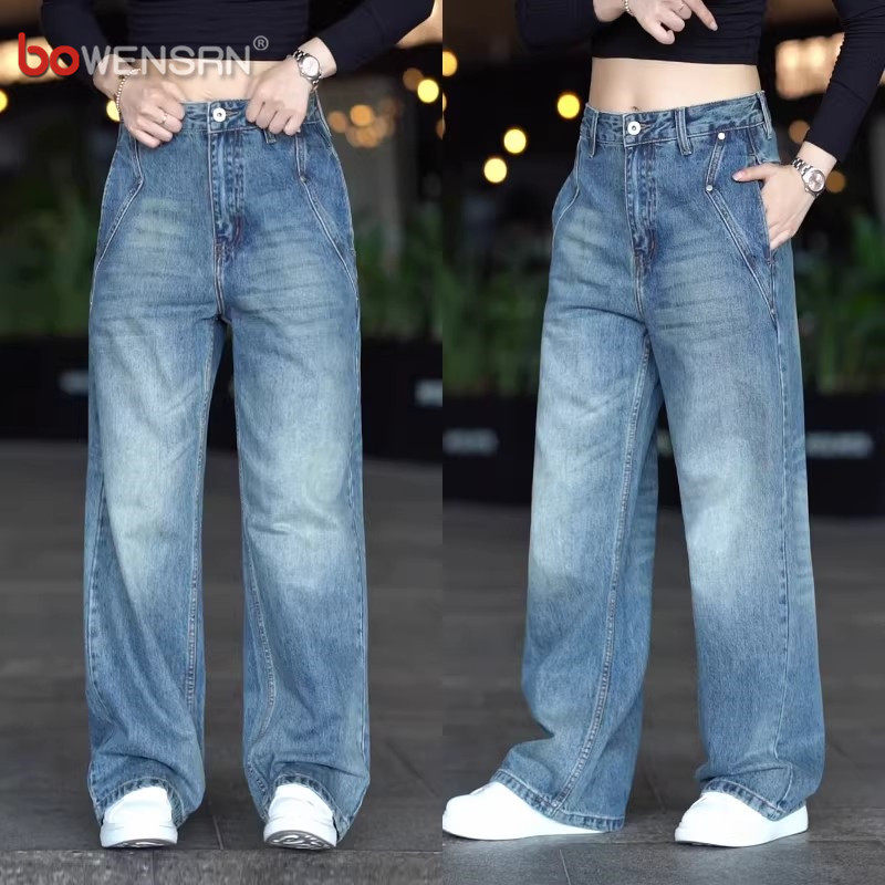 潮牌浅蓝色牛仔裤男士2026新款春夏季男裤宽松阔腿直筒长裤子男款