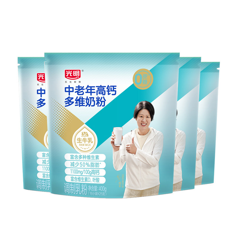 光明中老年奶粉高钙多维牛奶粉400g*4袋送礼爸妈营养品袋装