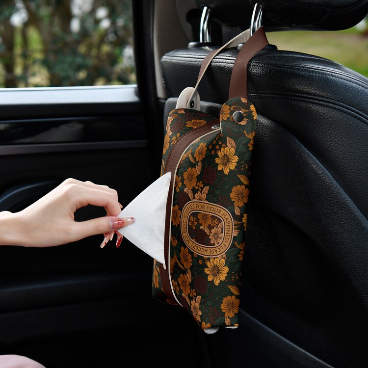 新古典花卉皮革纸巾盒纸巾袋挂式汽车抽纸盒车载纸巾套创意高级感