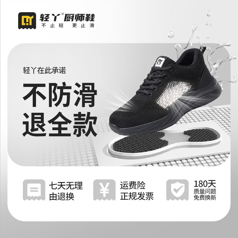 轻丫厨师鞋夏季透气增高防滑防水防油后厨餐饮厚底专用男女款轻便