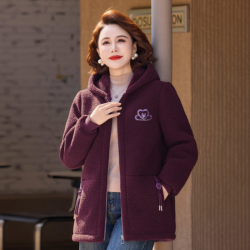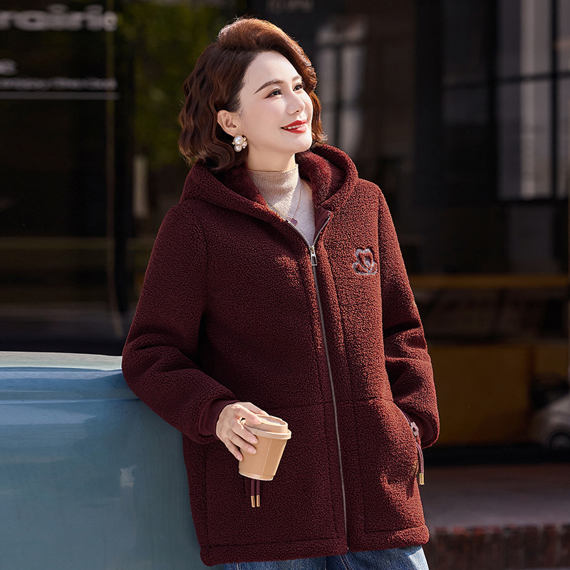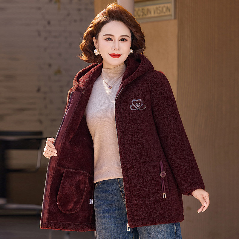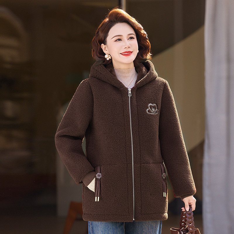 中老年女装冬季加厚颗粒绒连帽外套时尚妈妈洋气减龄加绒保暖棉衣
