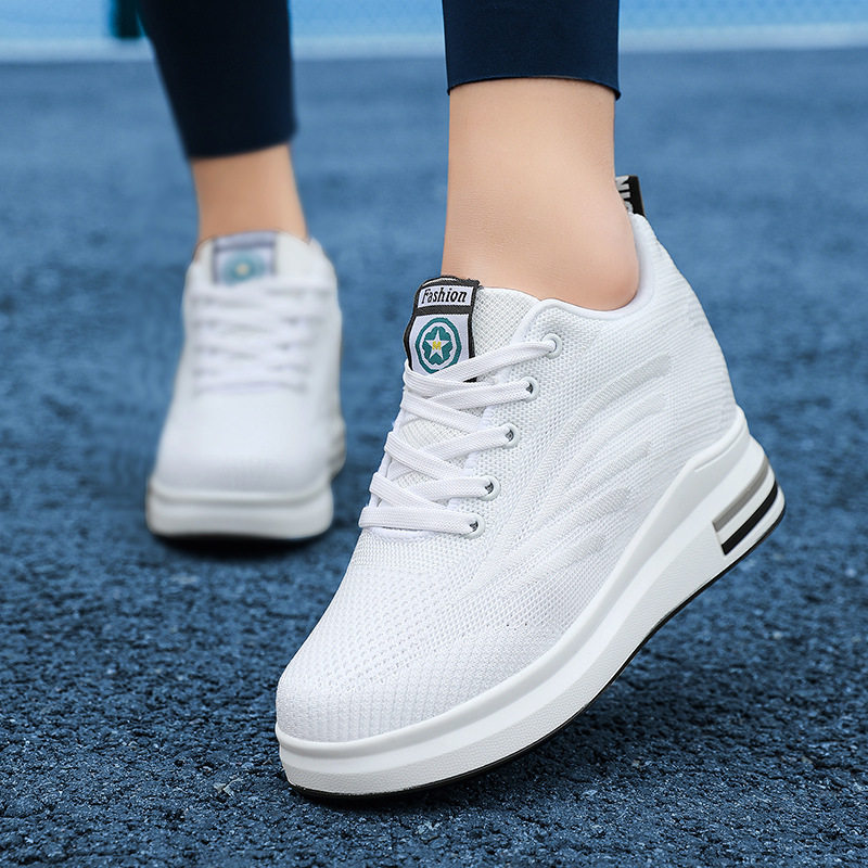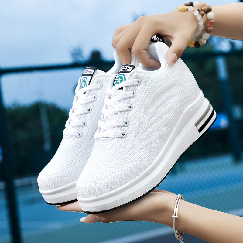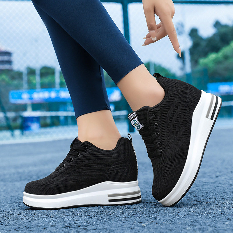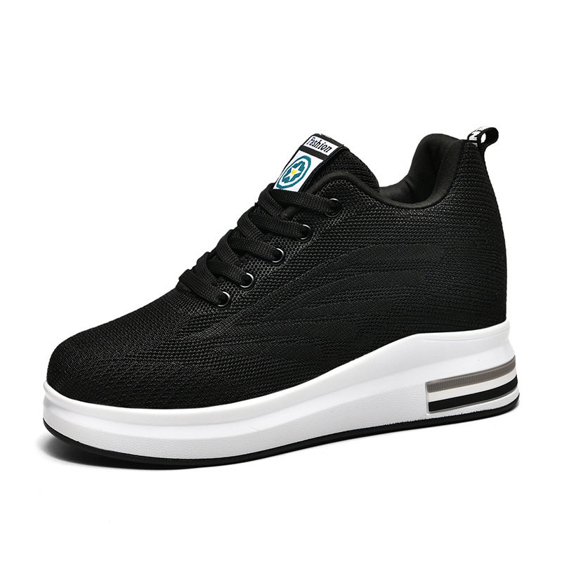 春夏季新款网面透气厚度隐形内增高运动鞋女鞋休闲鞋女士黑色鞋