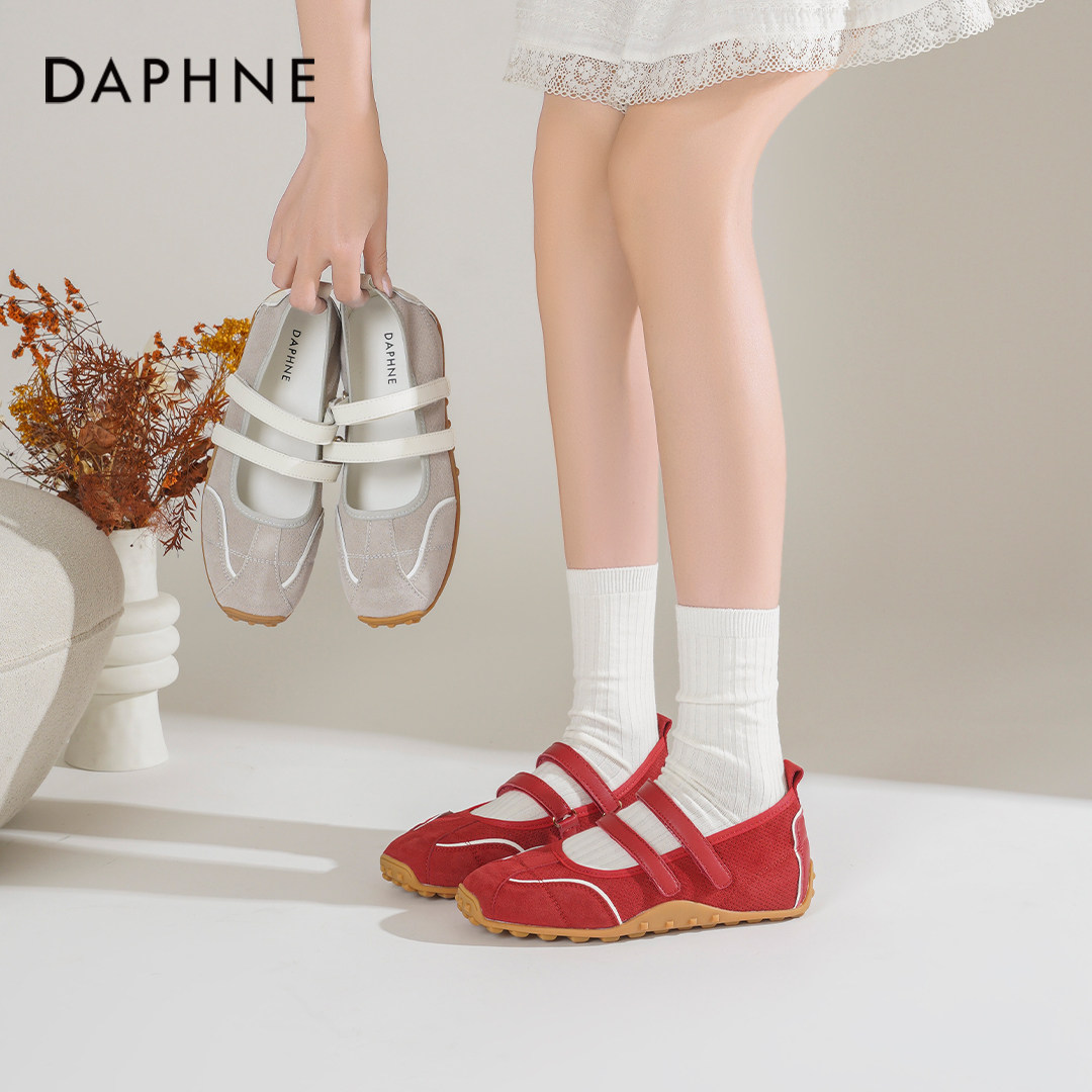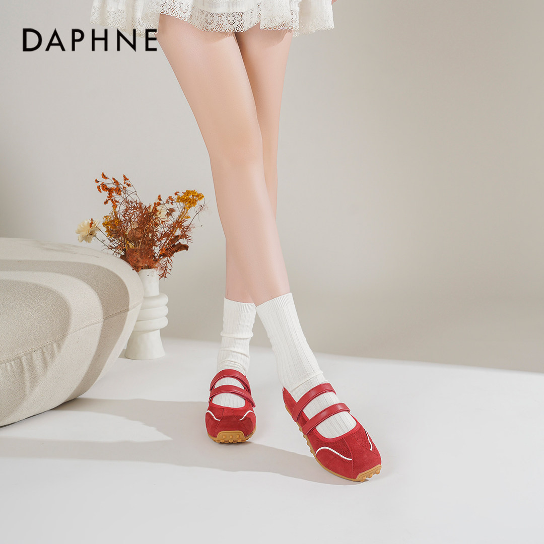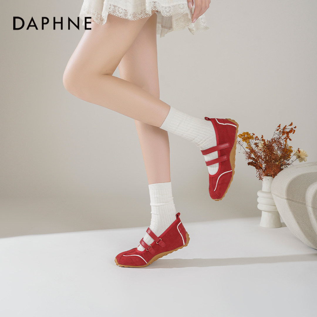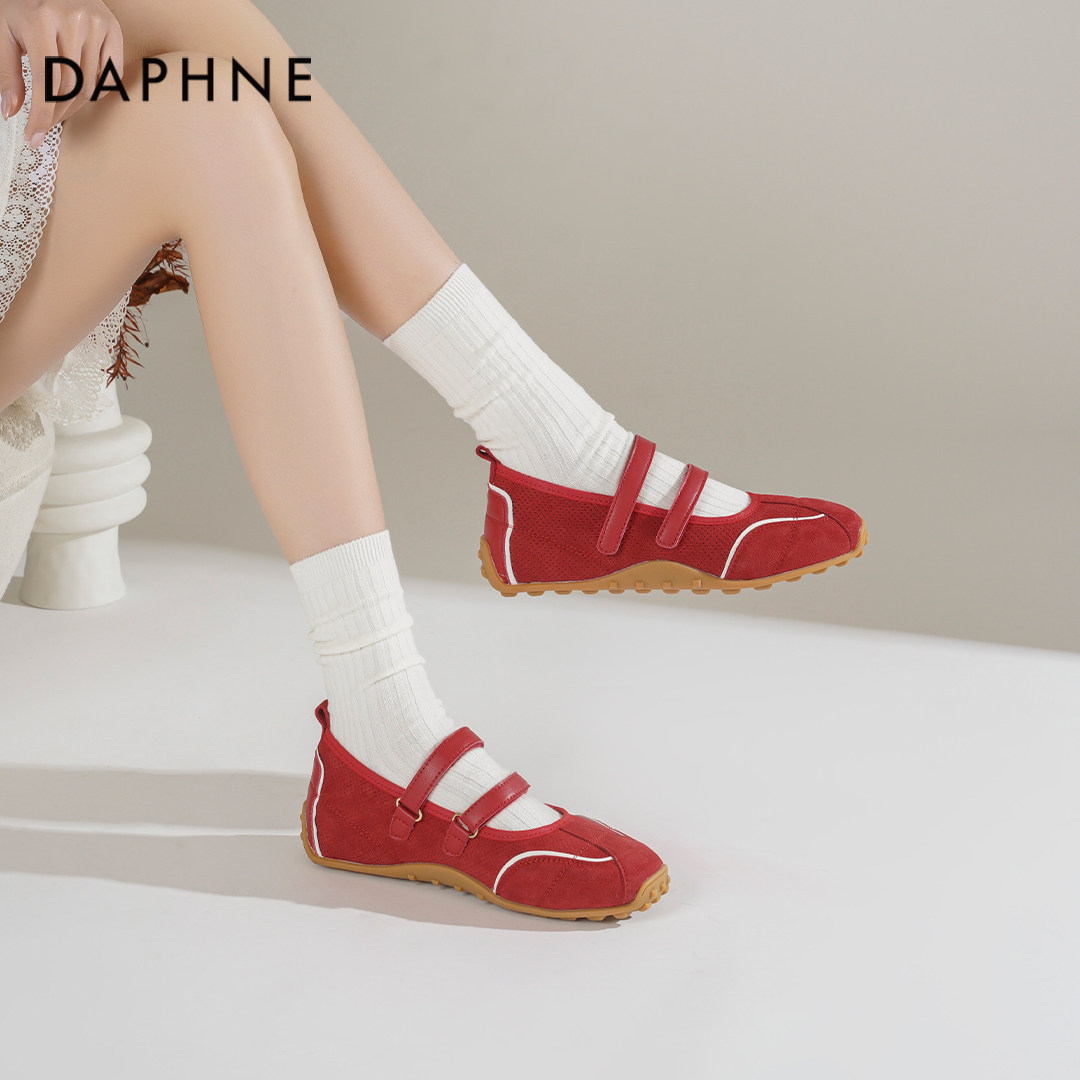 达芙妮红色单鞋女2026新款春季软底运动玛丽珍鞋内增高芭蕾德训鞋