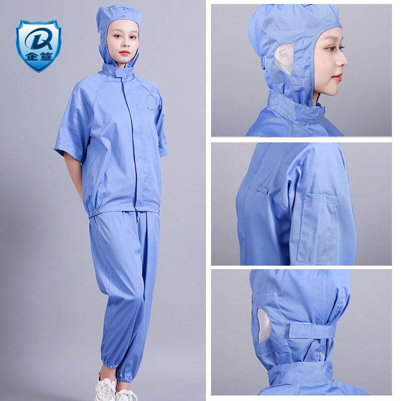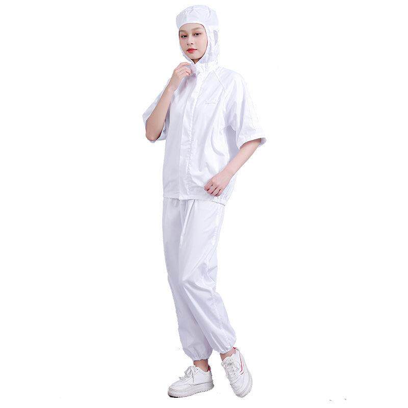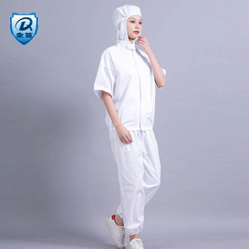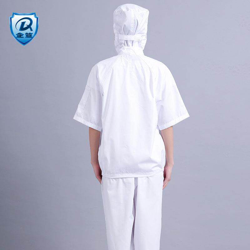 食品厂夏季薄款透气吸汗工厂车间男女士卫生防尘工作服装连帽短袖