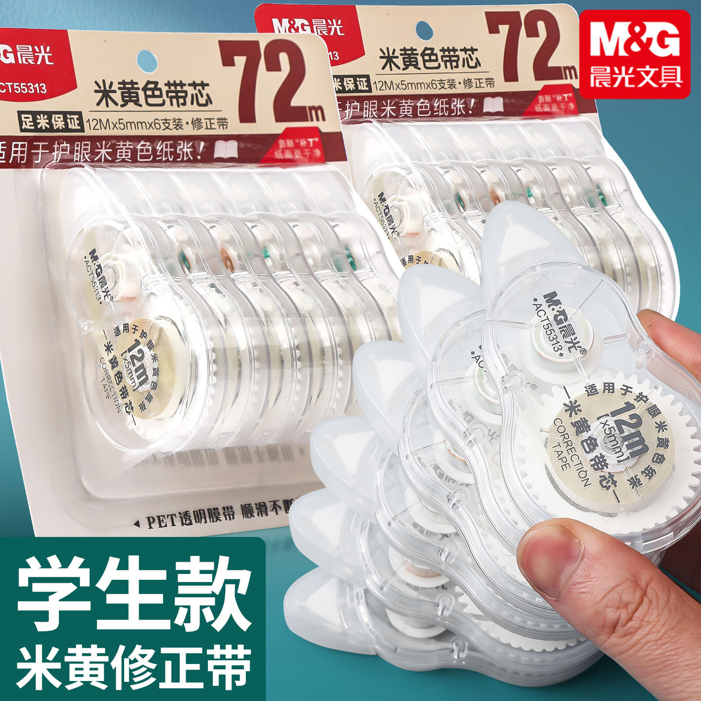 晨光原纸色隐形修正带米黄色修正带初中生专用修改带学生专用护眼色黄色涂改带大容量静音修正带改错带