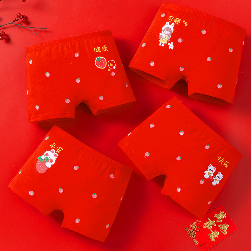 女童内裤全棉a类中大童女孩纯棉平角发育期小学生本命年红色裤头