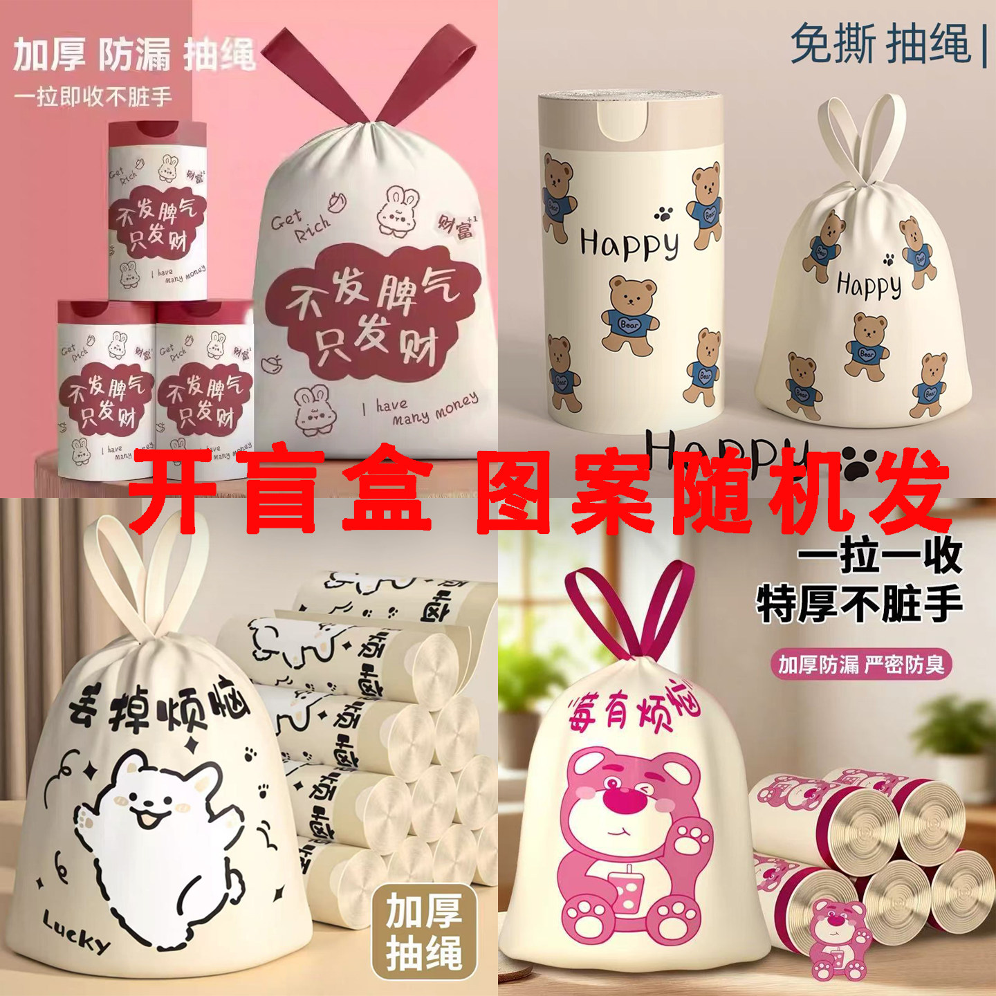 加厚免撕抽绳垃圾袋手提式大号家用塑料袋耐高温防臭厨房清洁袋