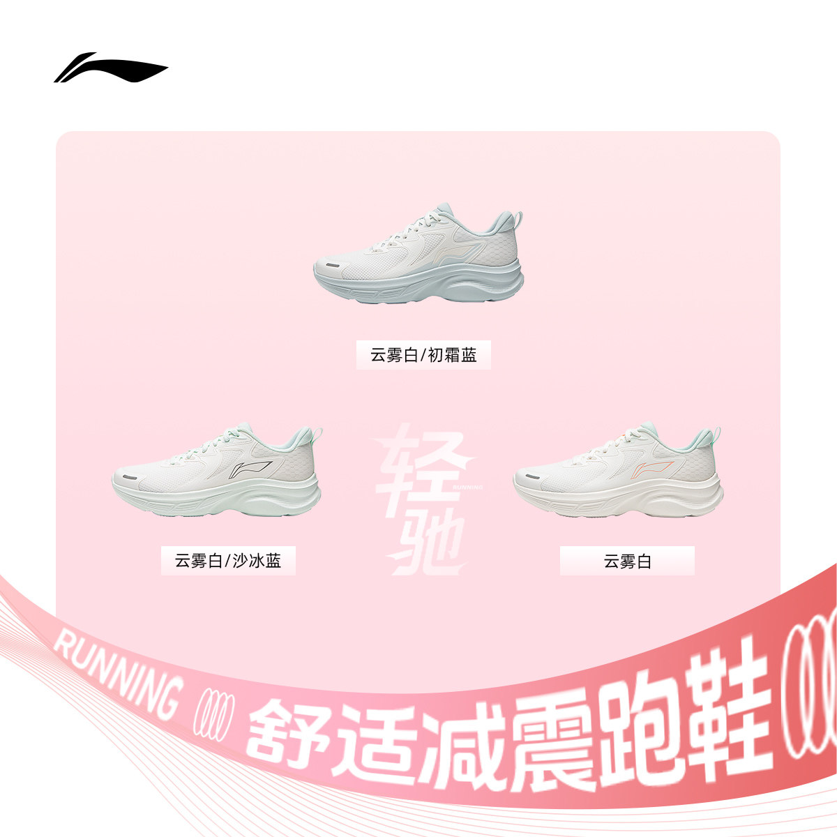 李宁轻驰丨跑步鞋女鞋2026新款轻便缓震舒适软底百搭休闲运动鞋子