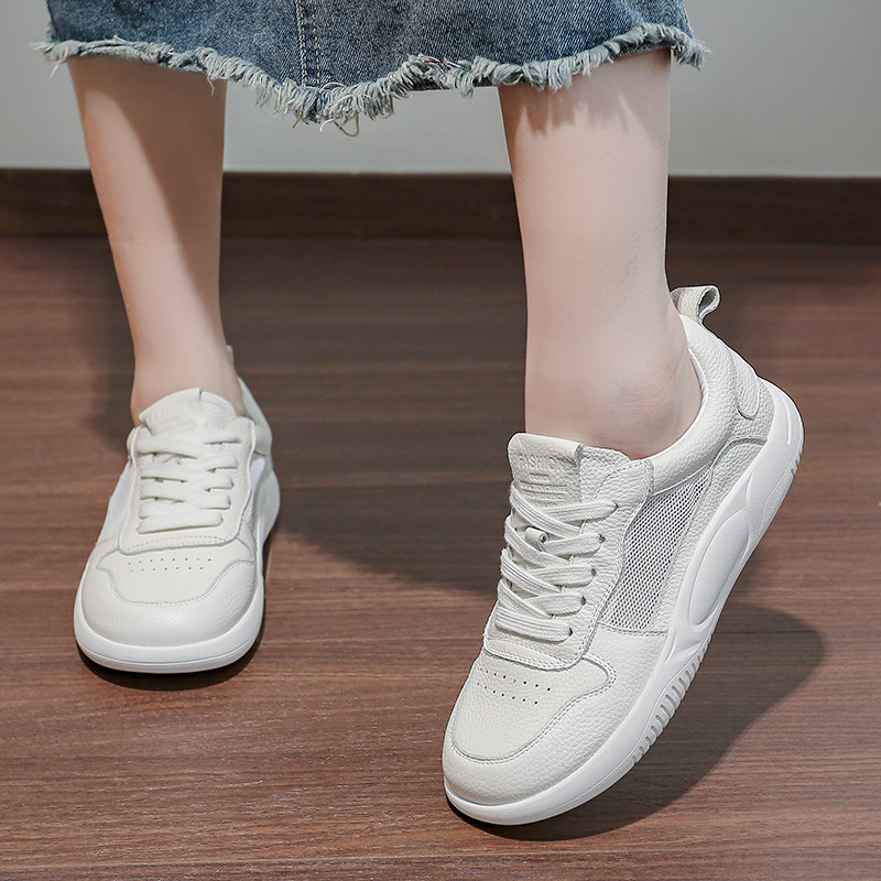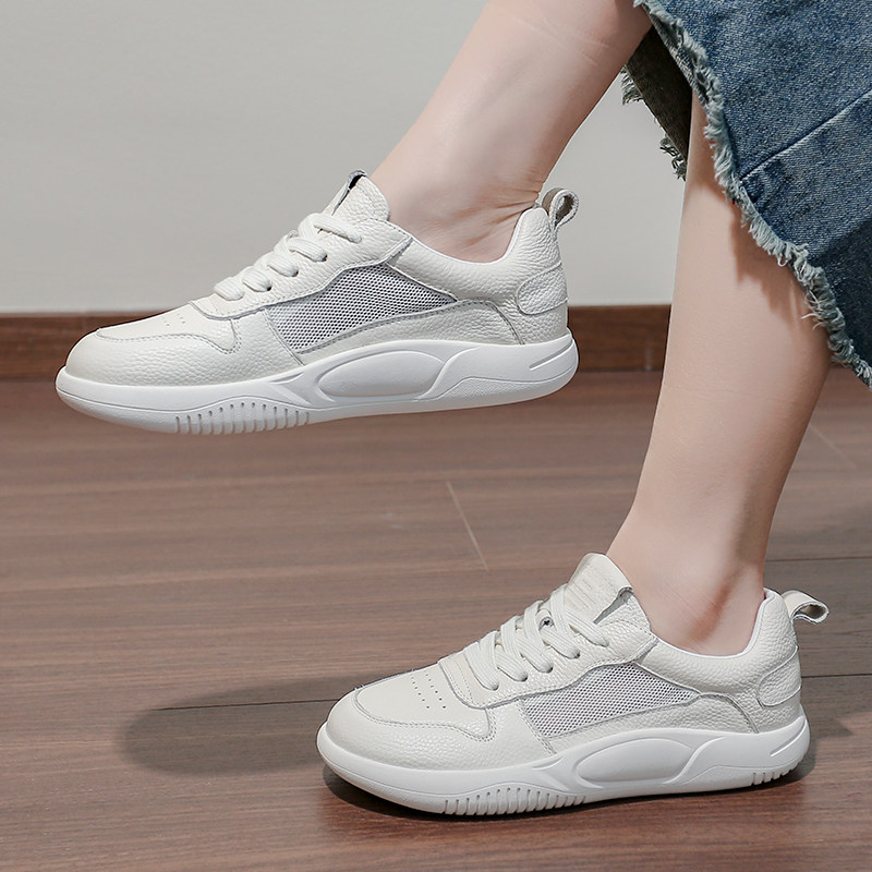 头层牛皮网面小白鞋女透气2026夏季薄款单鞋休闲平底百搭女鞋板鞋
