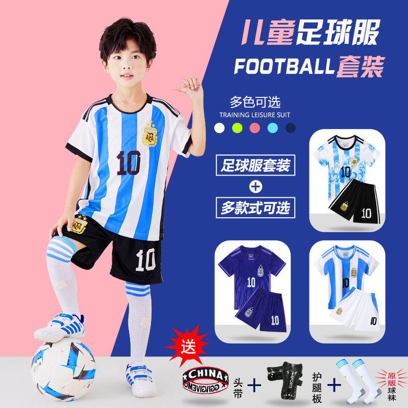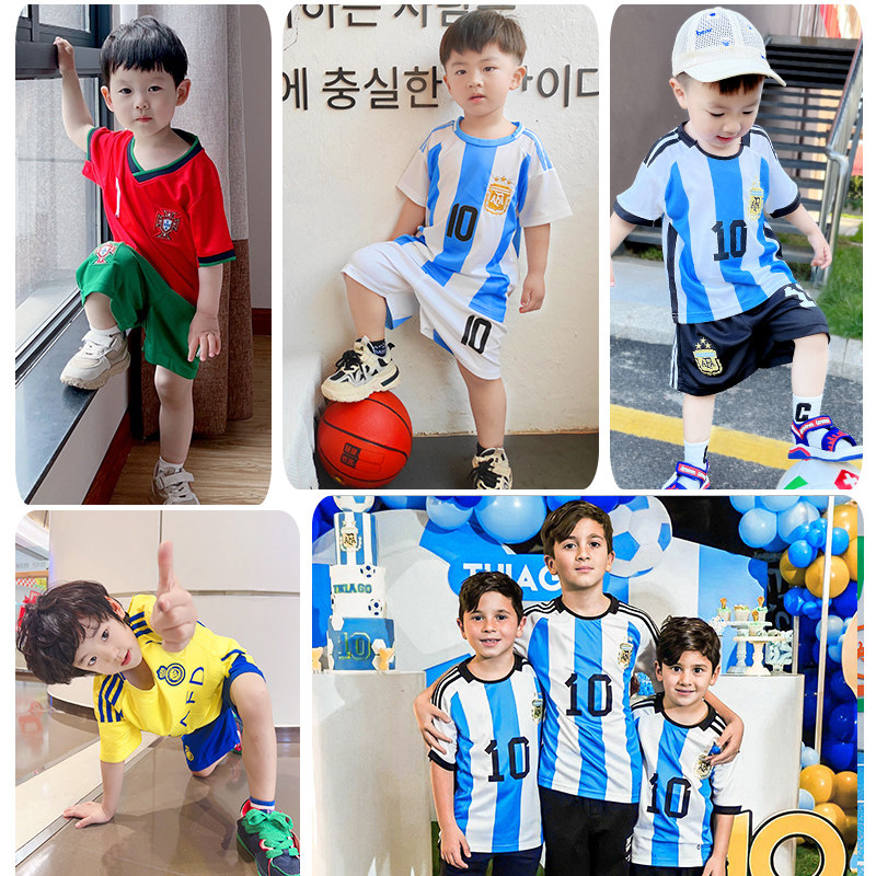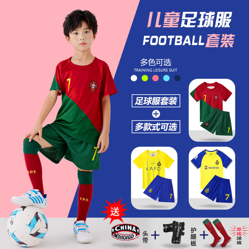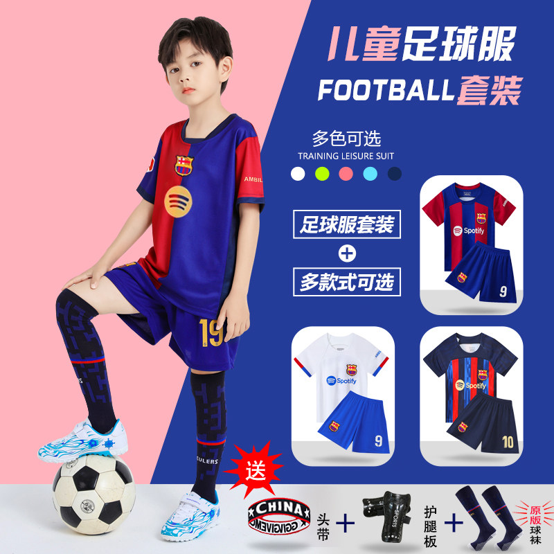 儿童足球服套装男童梅西10号皇马C罗球衣女运动比赛训练队服定制