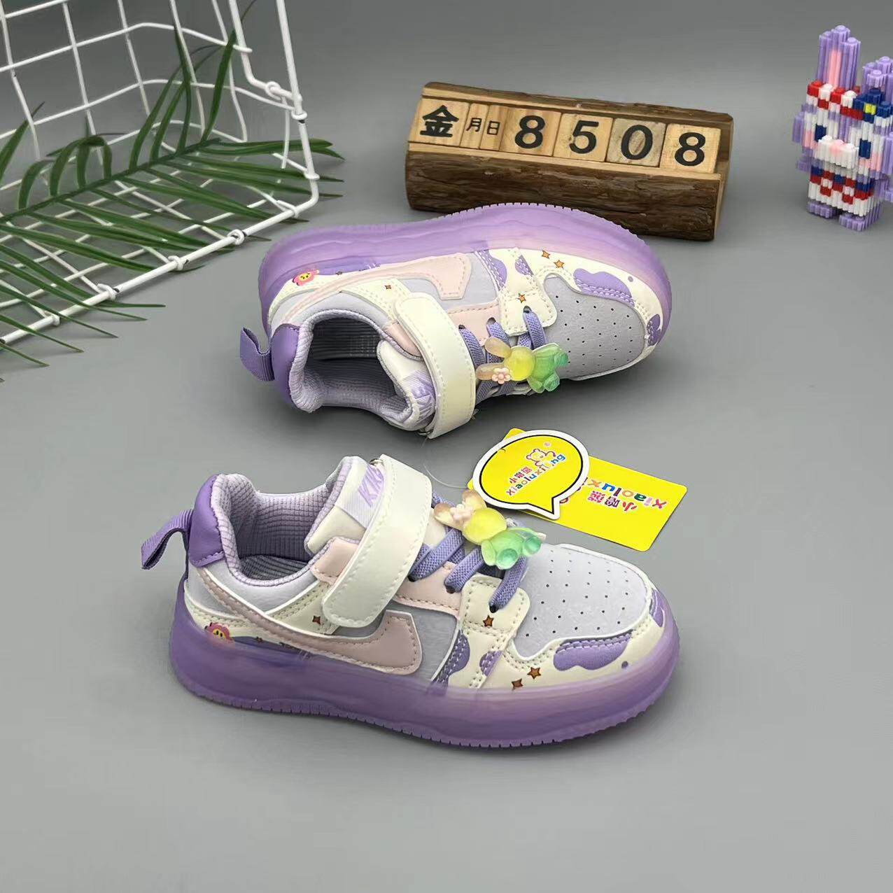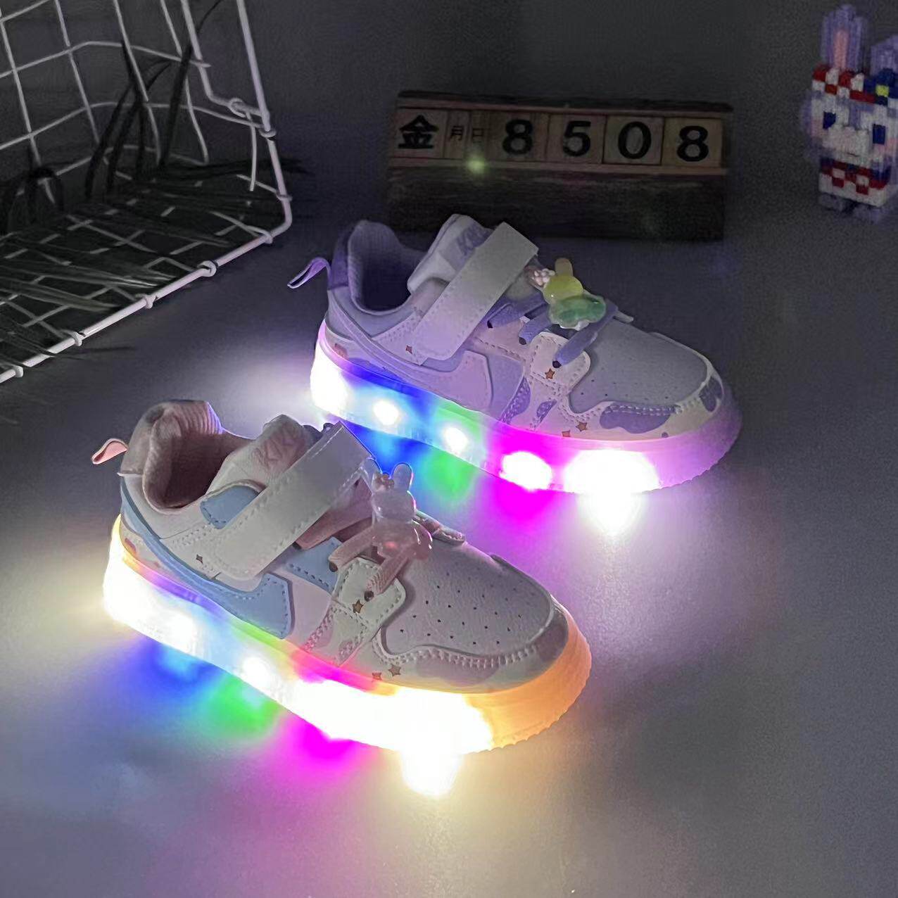 1-3-5岁男童板鞋皮面防水亮灯发光女童鞋子春夏款宝宝学步鞋软底