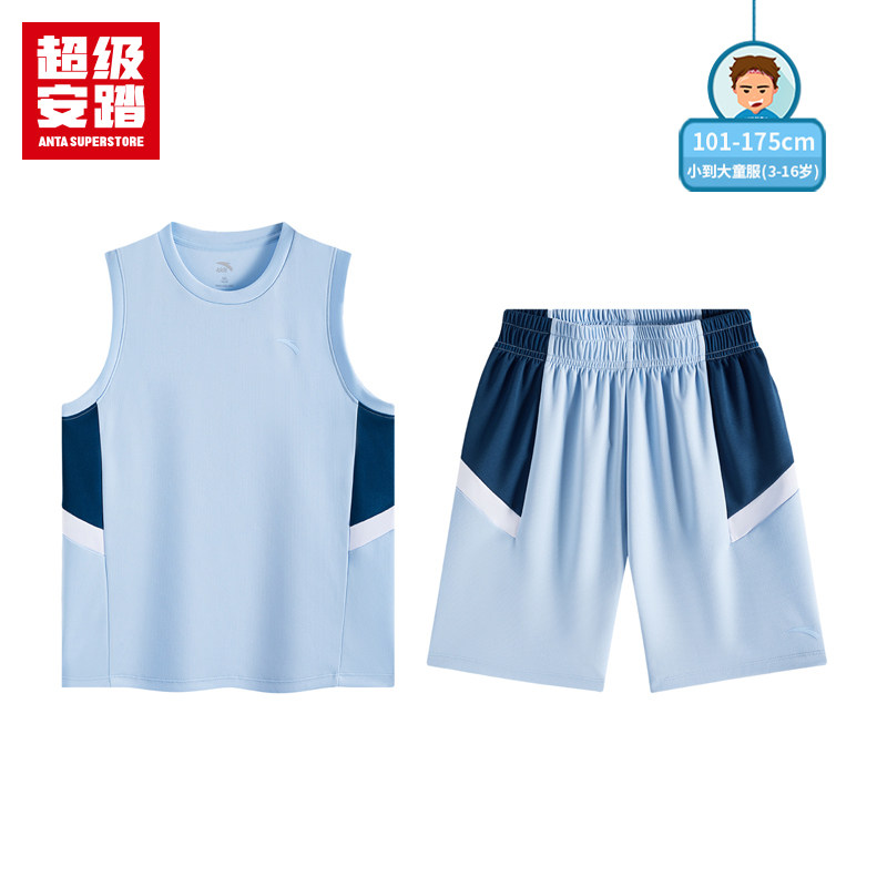 超级安踏男童篮球服春季速干透气运动套装背心短款球服352531205U