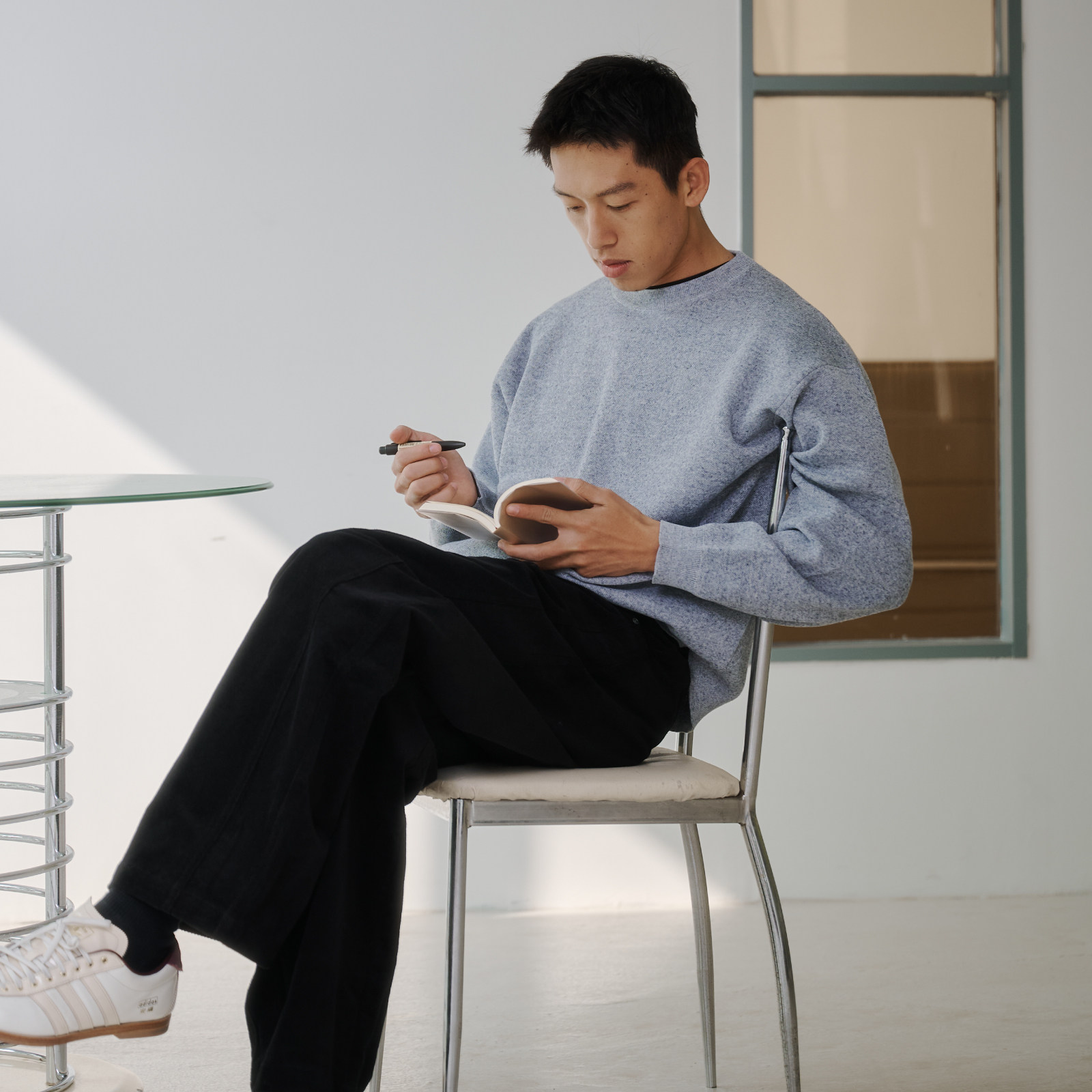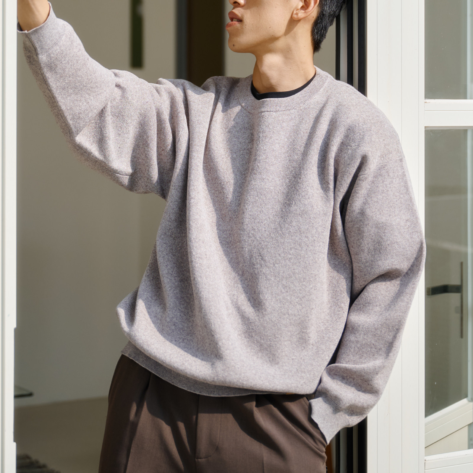 BOHRHOO25AW宽松挺括抗皱透气亚麻毛织圆领长袖套头卫衣男女春