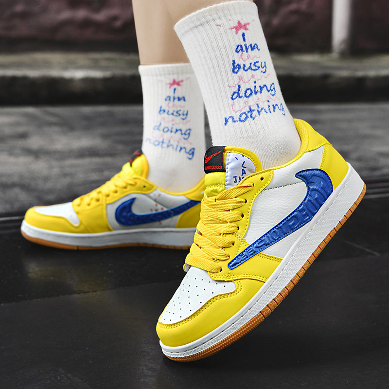 莆田aj1男鞋倒钩金丝雀正品sb联名低帮闪电白蓝白棕板鞋女跑步鞋