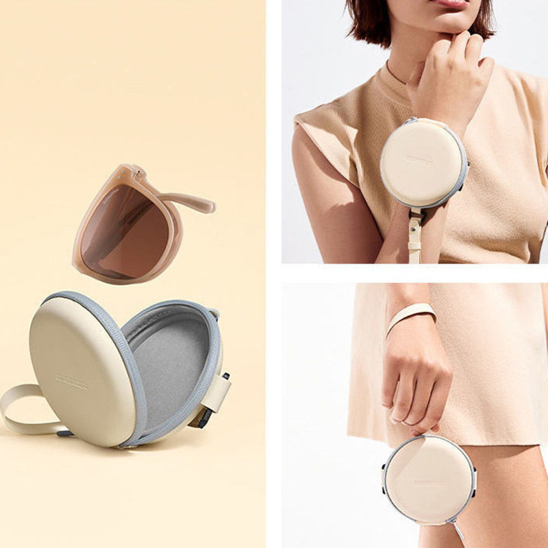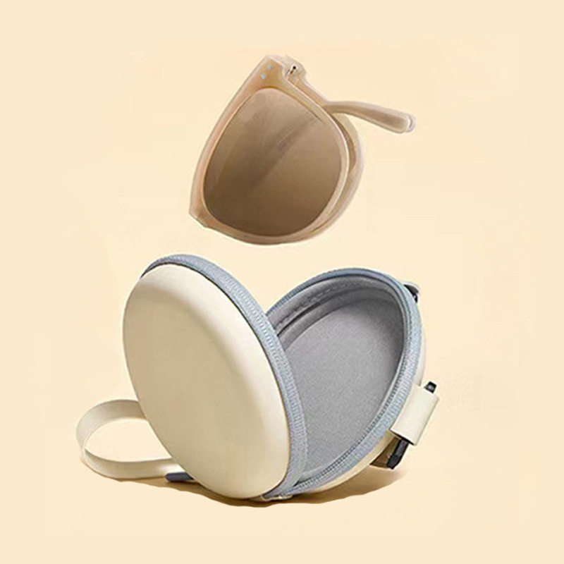 折叠眼镜收纳包圆形眼镜拉链软包轻便时尚折叠眼镜收纳盒太阳镜盒