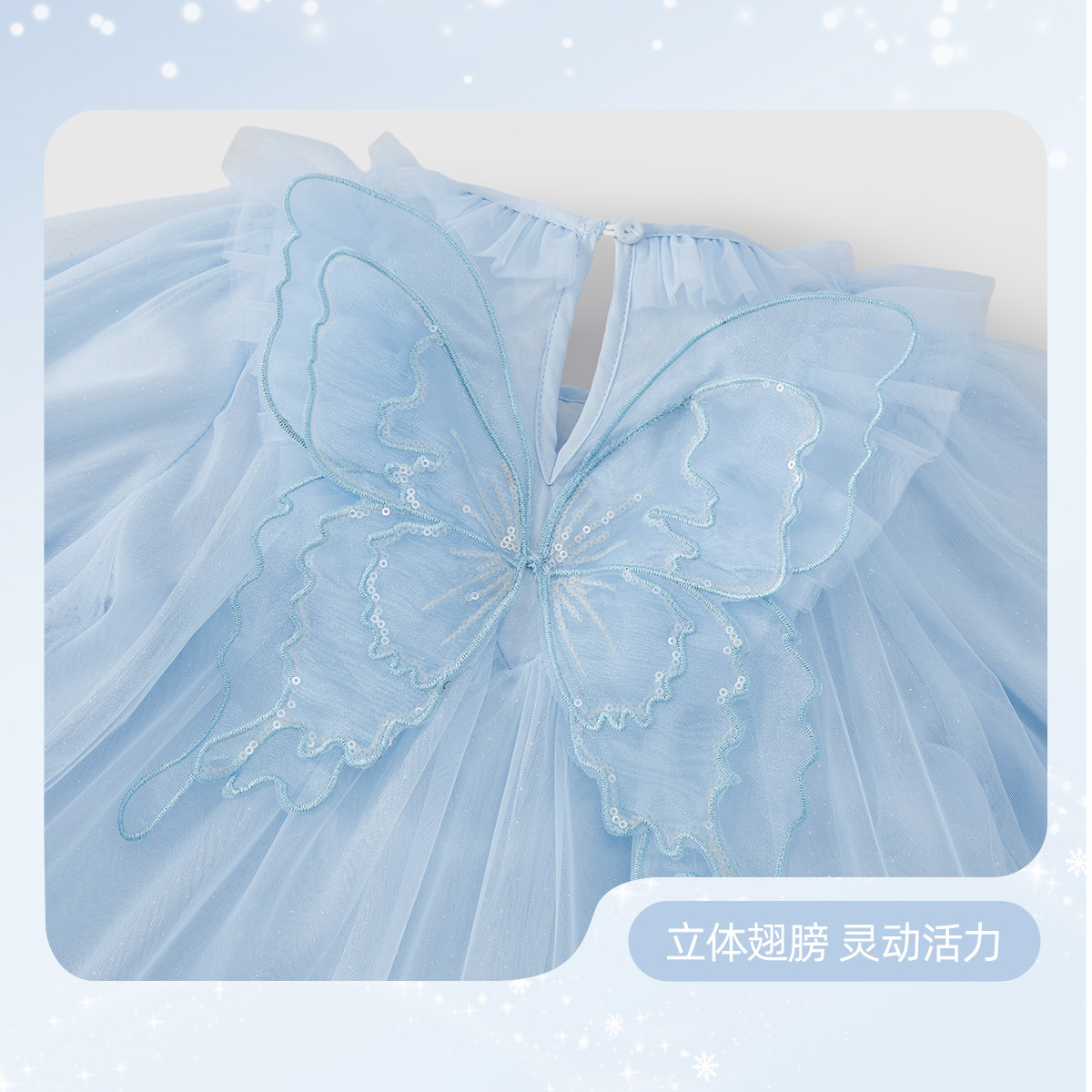 女童冬季连衣裙宝宝蝴蝶网纱裙甜美大童冬装蓝色长袖春秋儿童裙子