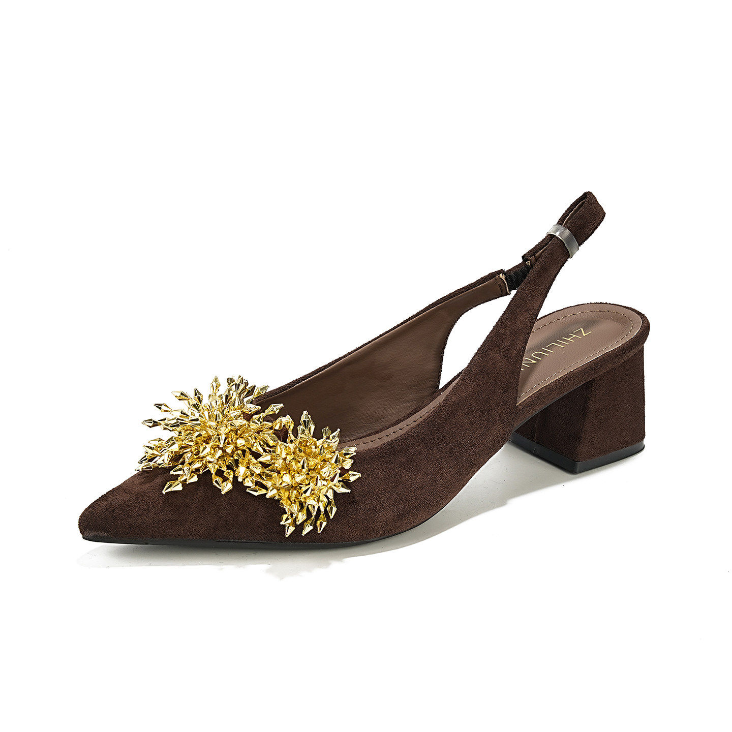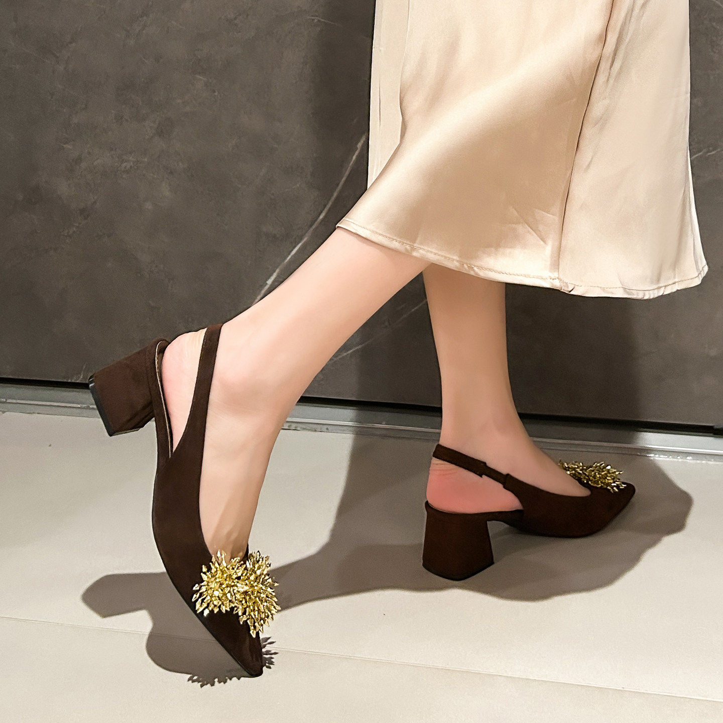 大码女鞋2026新款今年流行爆款夏单鞋水钻后绊带通勤法式包头凉鞋