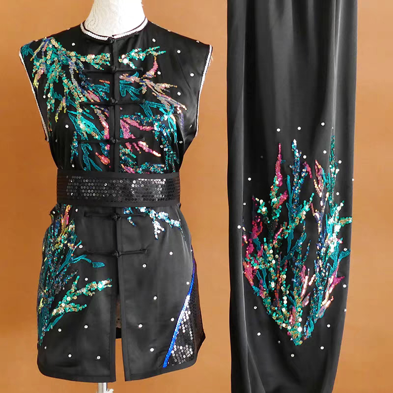 竞赛男子女子南拳服 武术服 太极服 刺绣龙凤花 亮片比赛服装定制