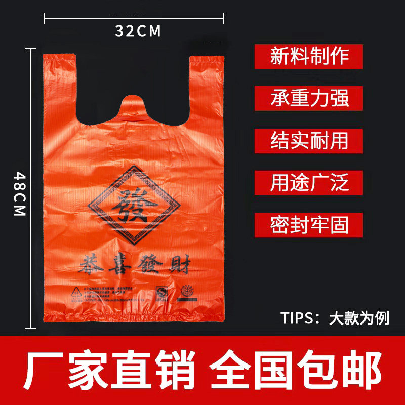 加厚红色塑料袋一次性外卖打包袋超市便利店购物袋手提食品背心袋