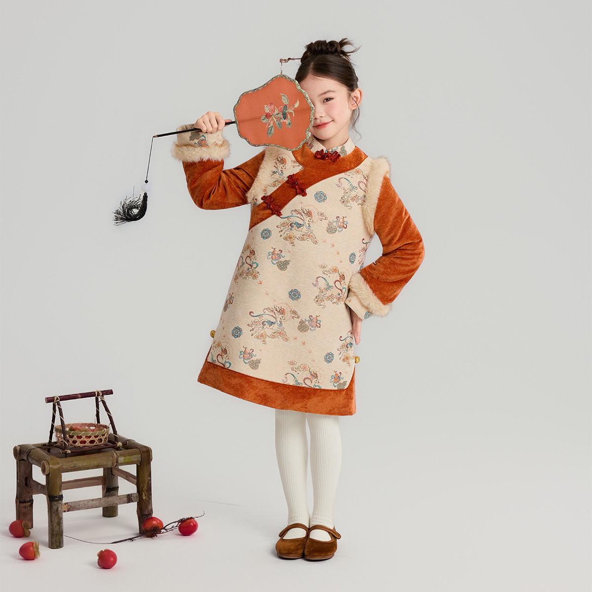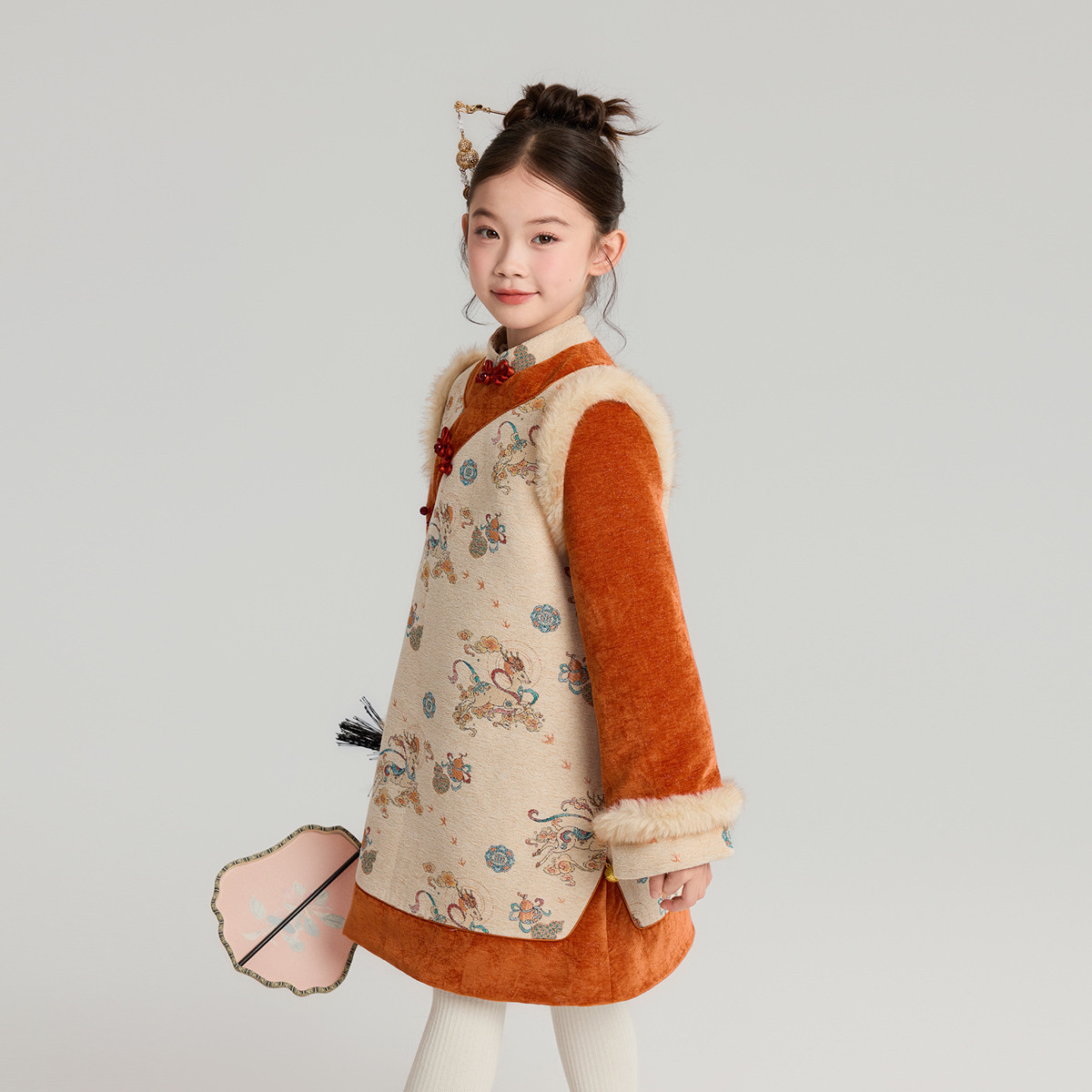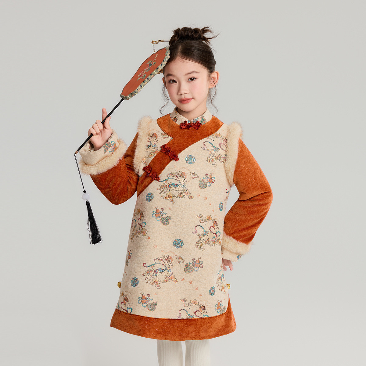 布丁哈鲁冬装女童保暖上衣2026秋冬新款儿童洋气新中式甜美裙子