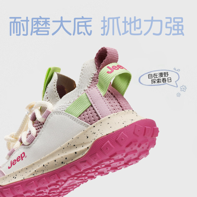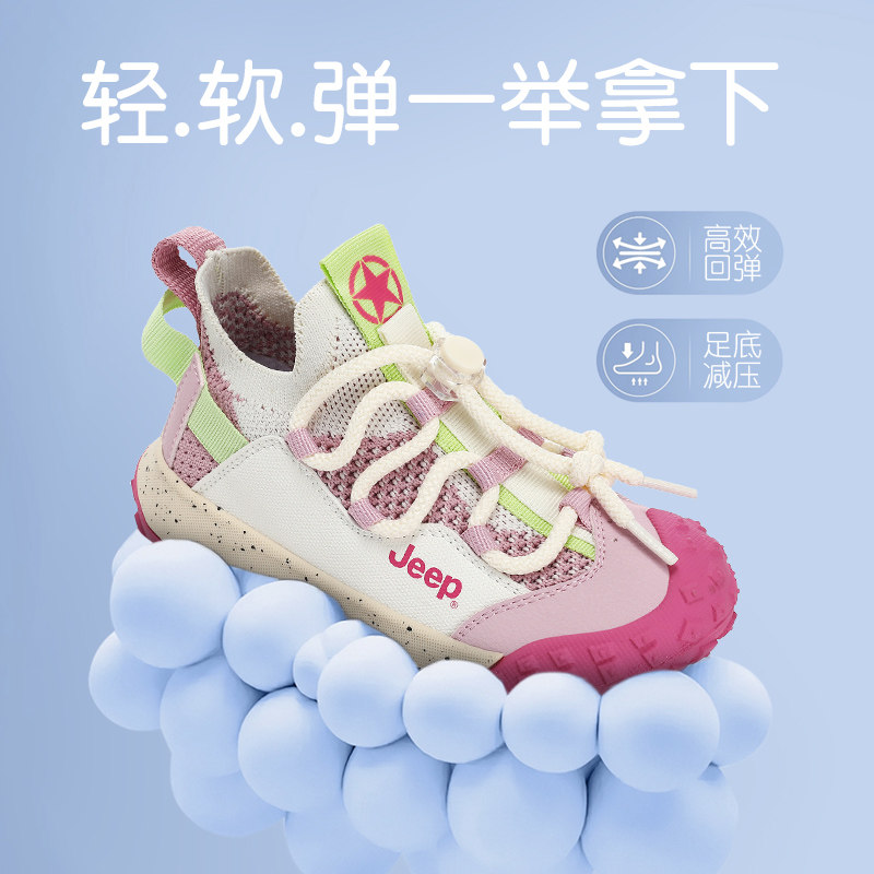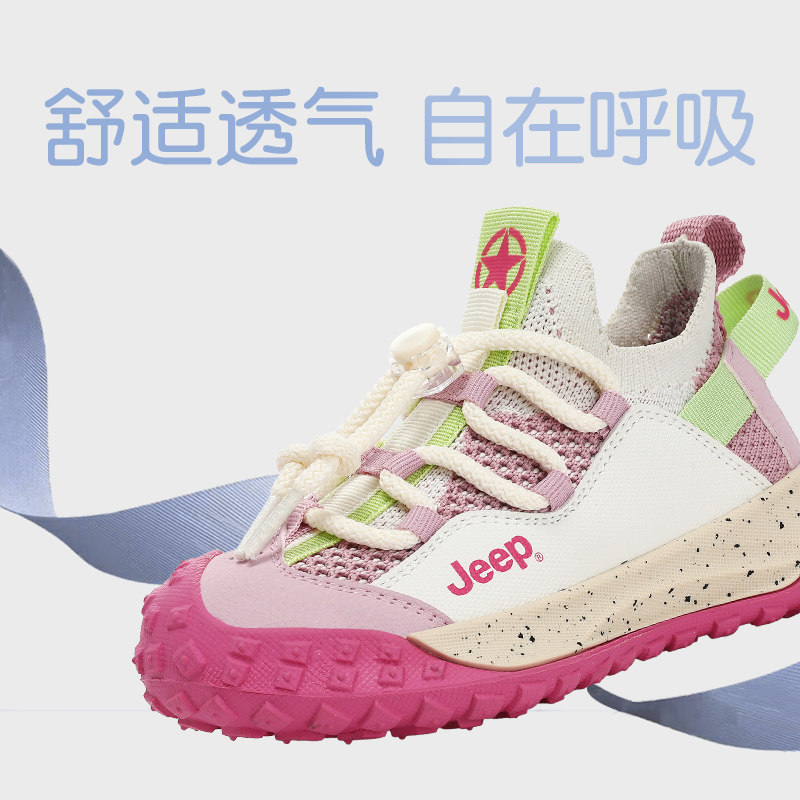 jeep女童鞋春季2026新款网面透气儿童一脚蹬运动鞋轻便防滑单网鞋