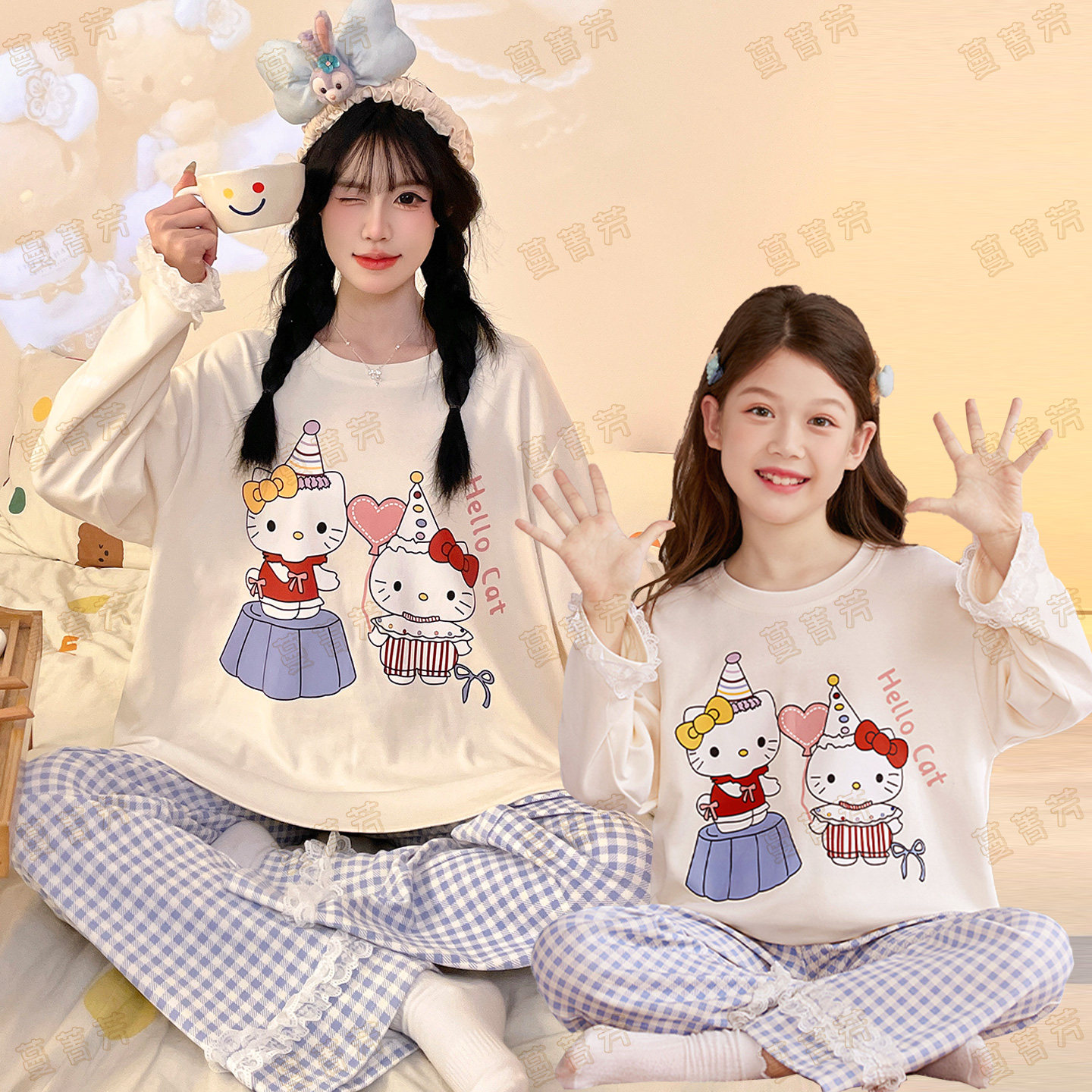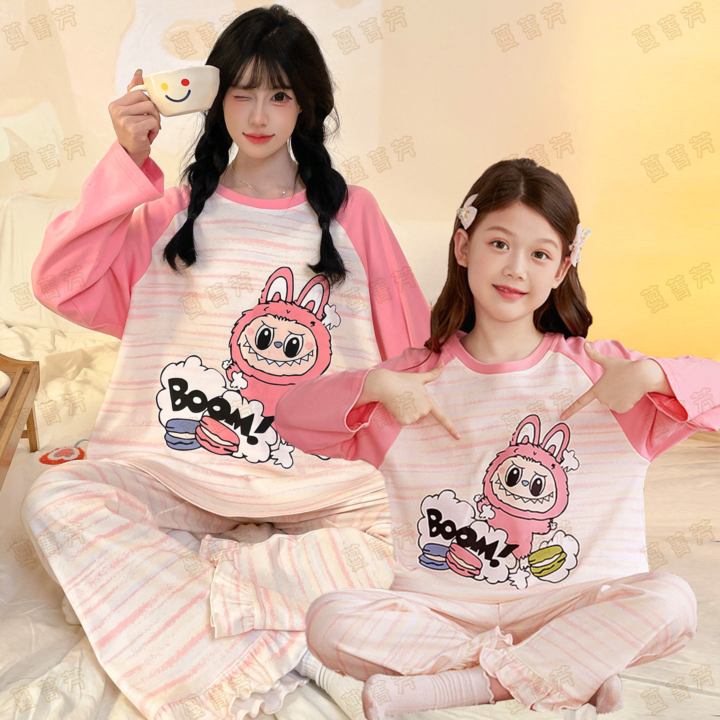 311线报网描述:100%纯棉套装 卡通萌趣图案 舒适透气面料