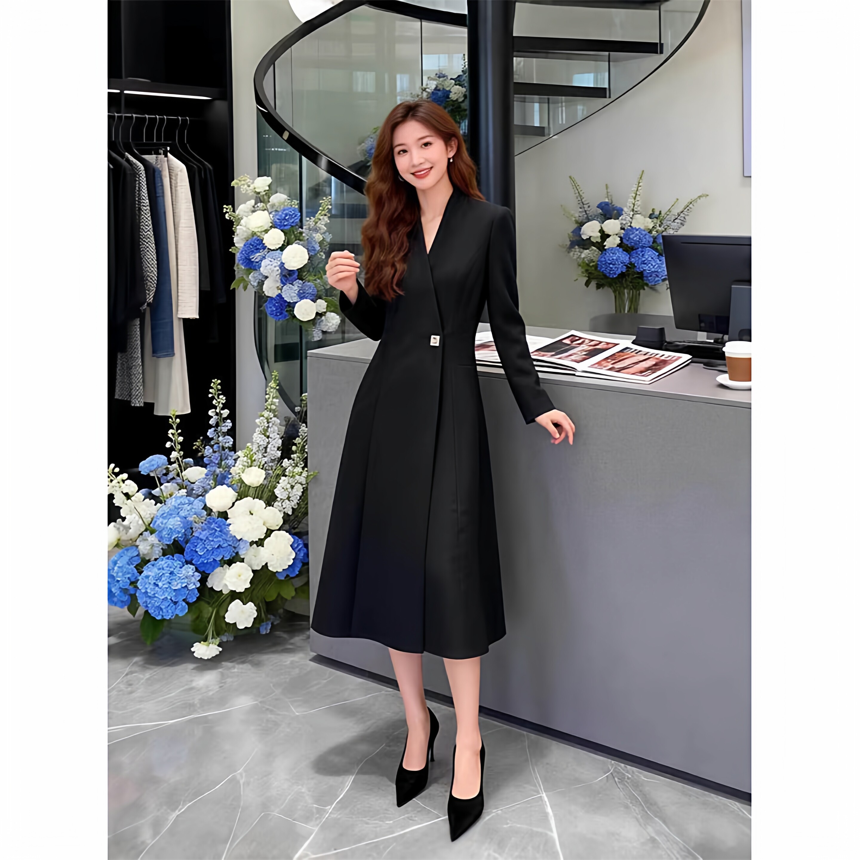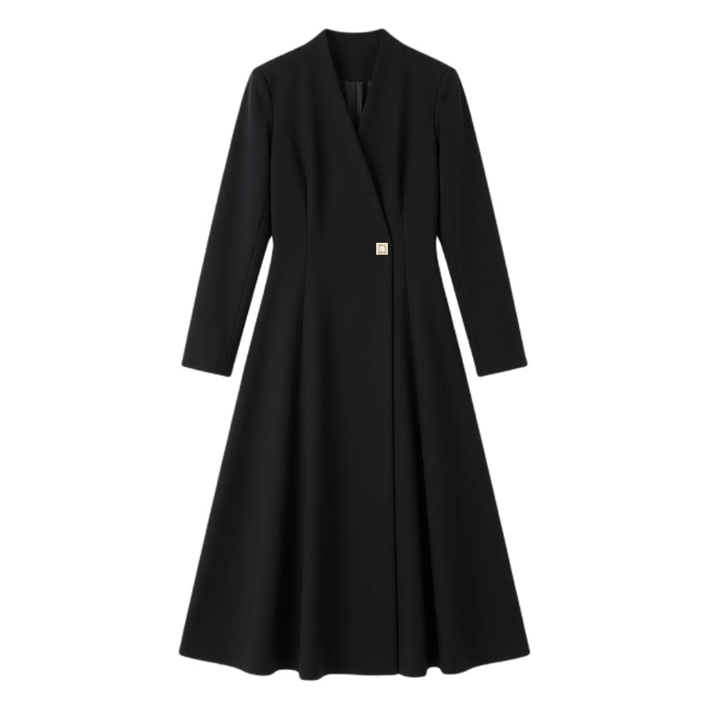 春季新款大码女装外套风衣式长袖连衣裙高级感胖MM显瘦V领长裙子