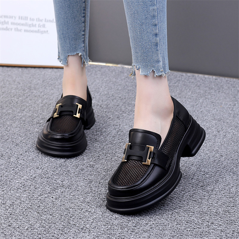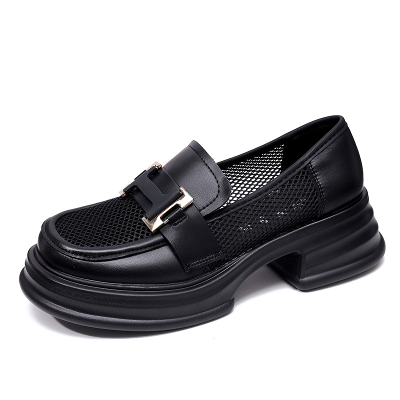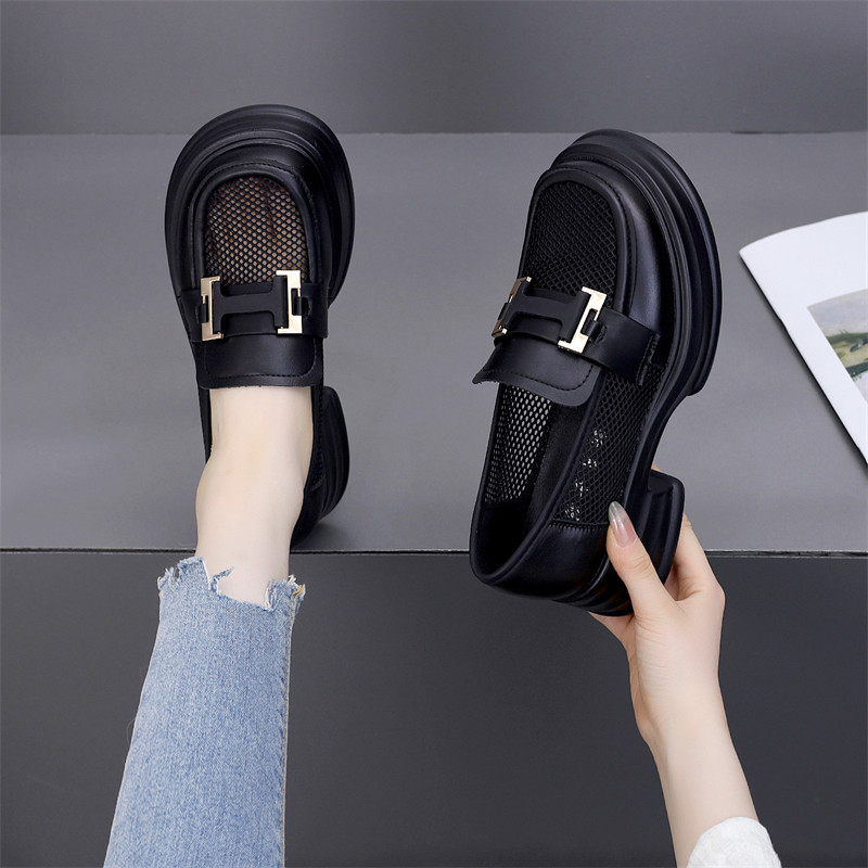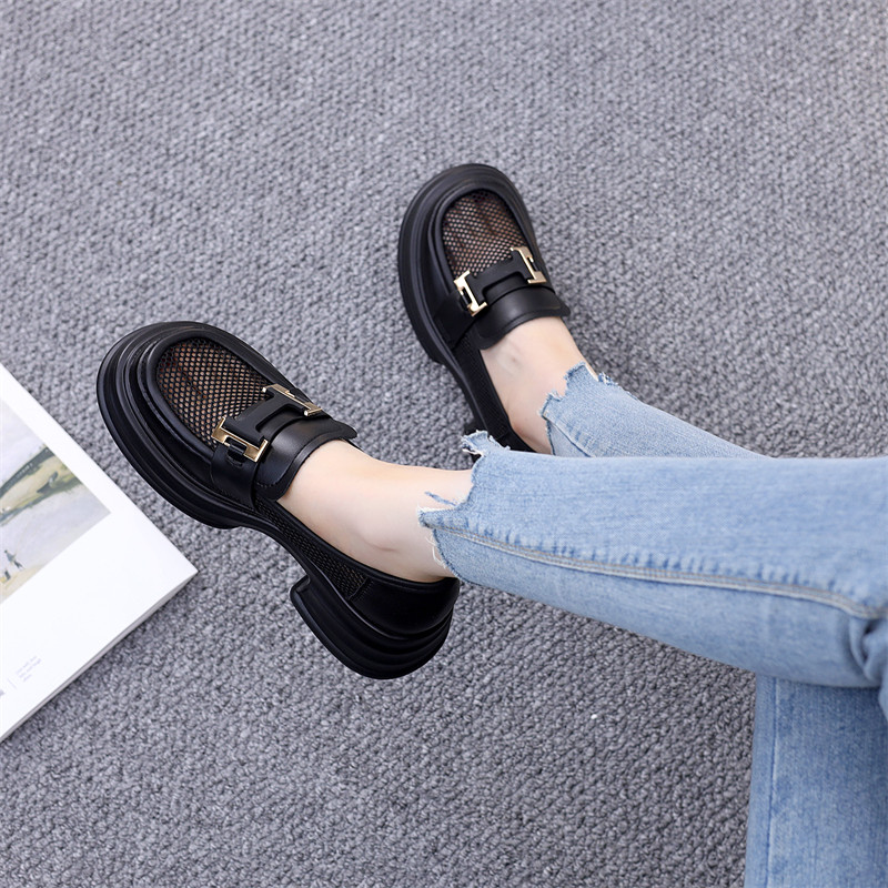网纱乐福鞋女一脚蹬2026夏季女镂空透气单鞋英伦风黑色网面大码41