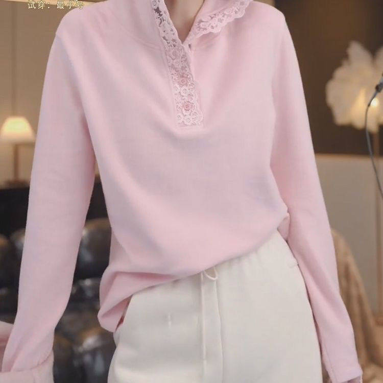 粉色双面德绒连帽打底衫女装秋冬2025新款内搭可外穿加厚长袖上衣