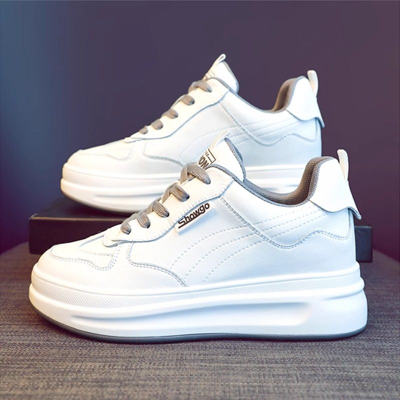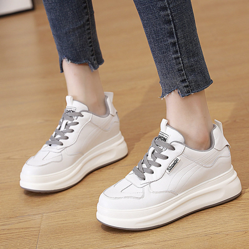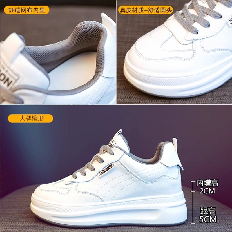 真皮小白鞋女款2026新款爆款坡跟显腿长软底小个子内增高休闲女鞋