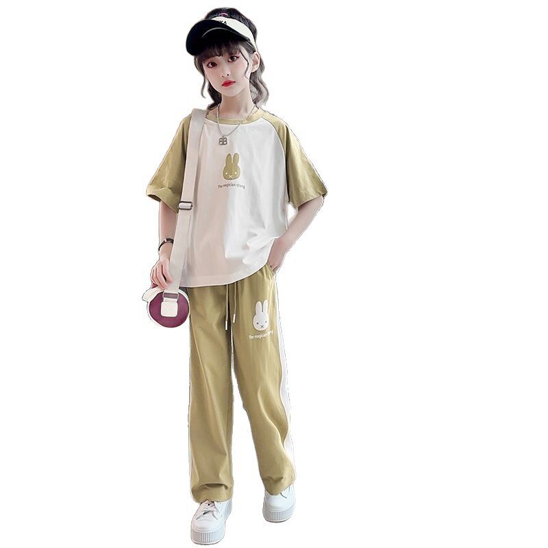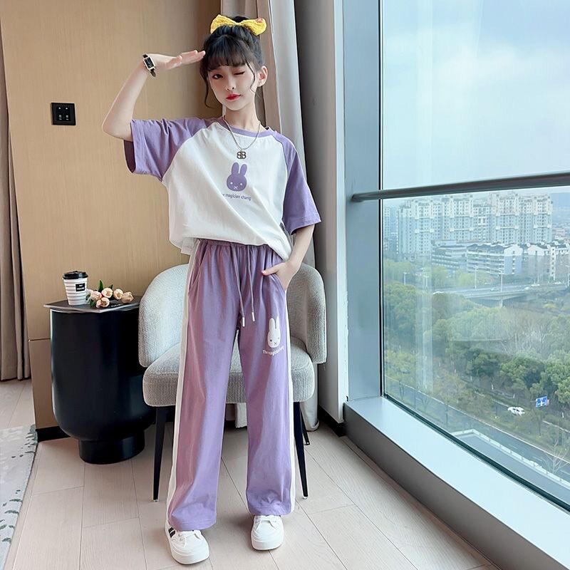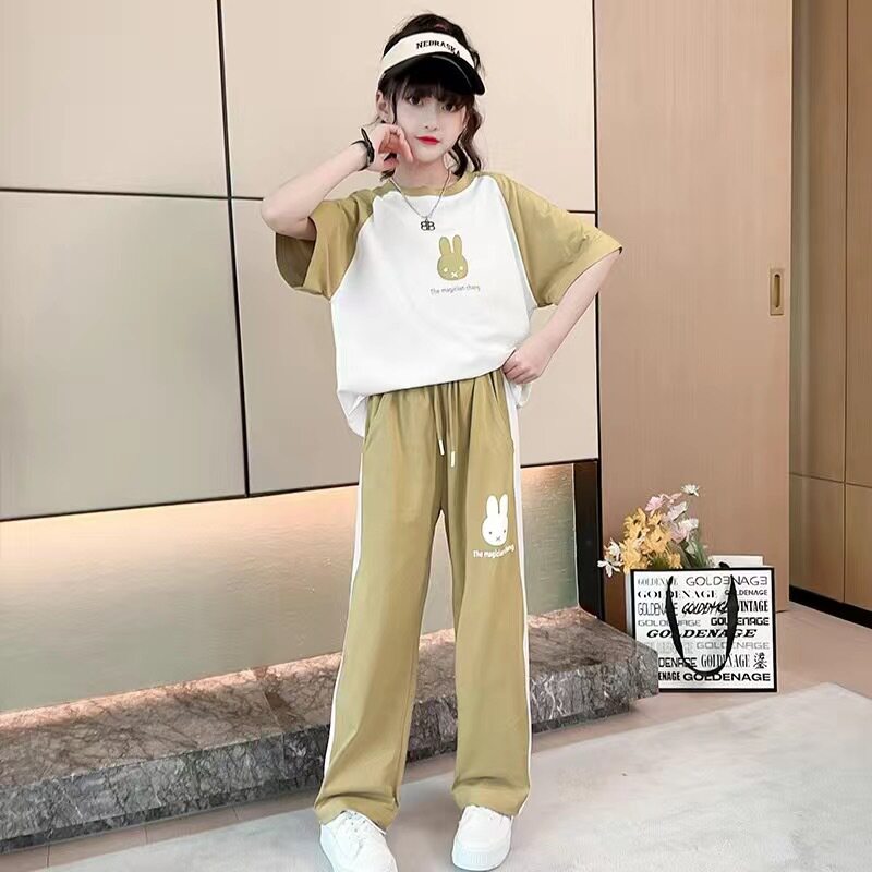 女童夏季套装2026新款运动中大童洋气时髦春秋款儿童夏装阔腿裤潮