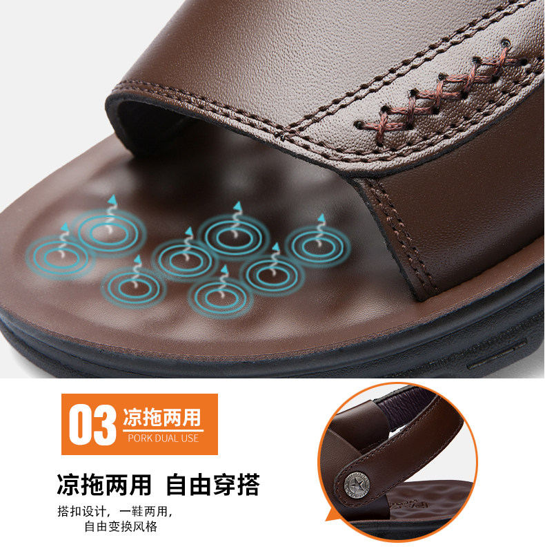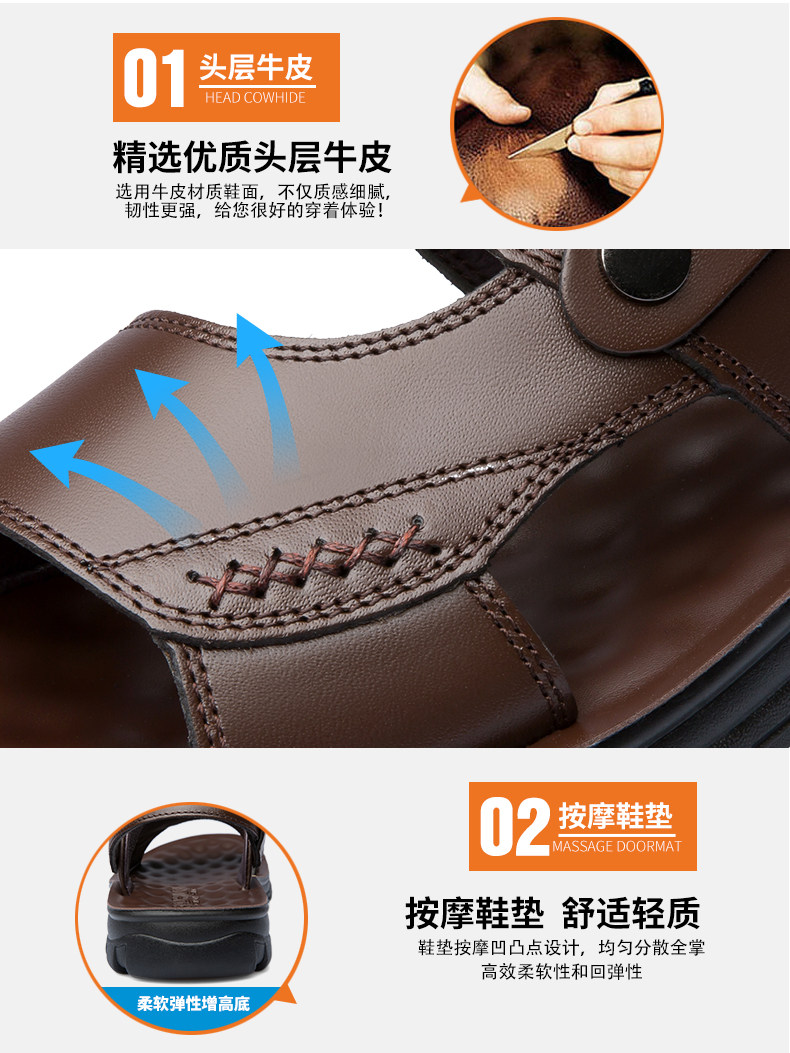 100%全牛皮凉鞋男真皮夏季新款男士沙滩鞋防滑防水皮凉拖鞋男两用
