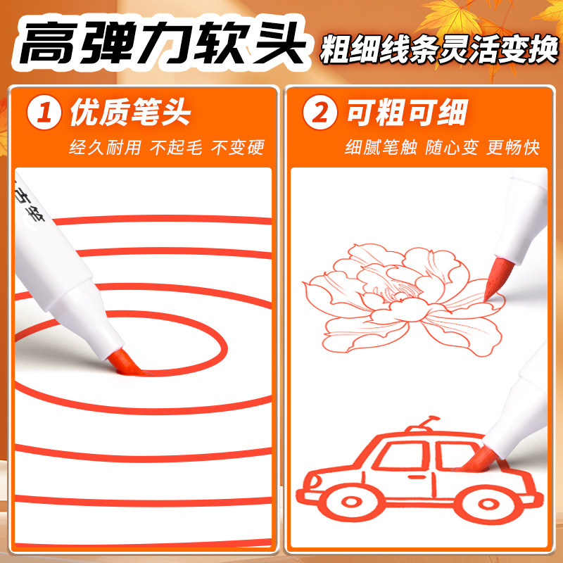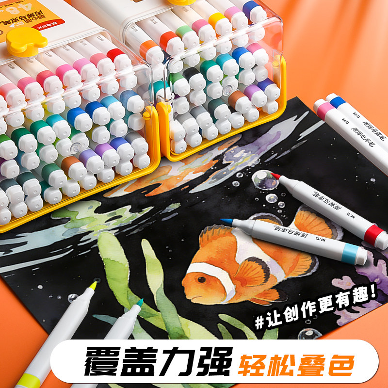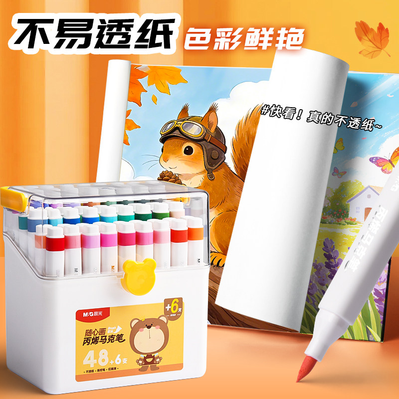 晨光丙烯马克笔软头小学生美术专用24色不透色可叠色幼儿园儿童彩笔彩色笔可水洗涂鸦绘画套装36色48色水彩笔