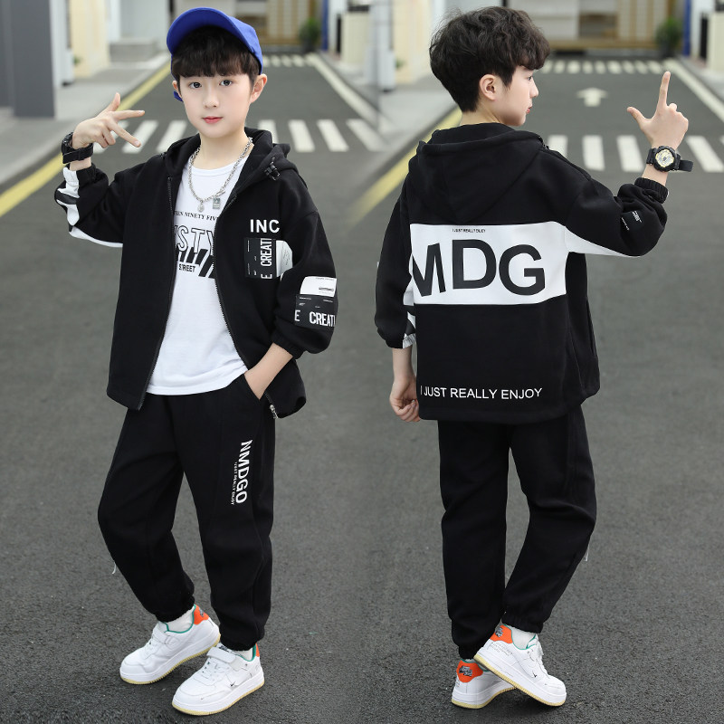 男童春装套装春秋2026新款中大童帅气时髦男孩儿童装春季三件套潮