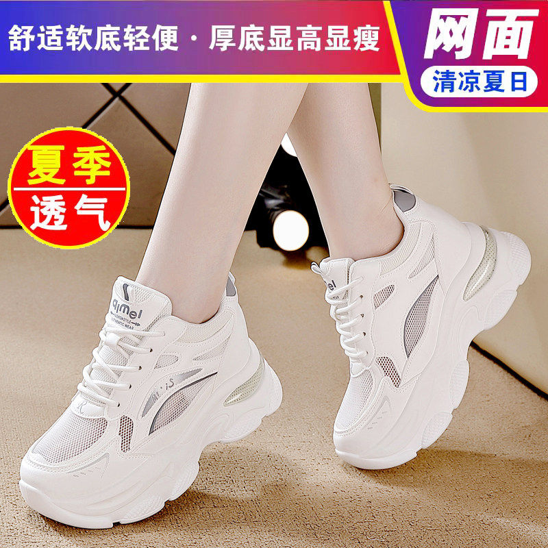 网面透气内增高老爹鞋女2026春夏季新款百搭厚底小个子旅游运动鞋