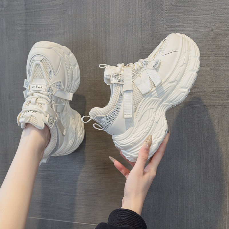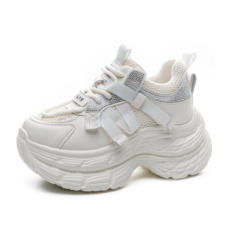 8cm增高厚底老爹鞋女2026新款夏季透气网面小个子运动休闲小白鞋