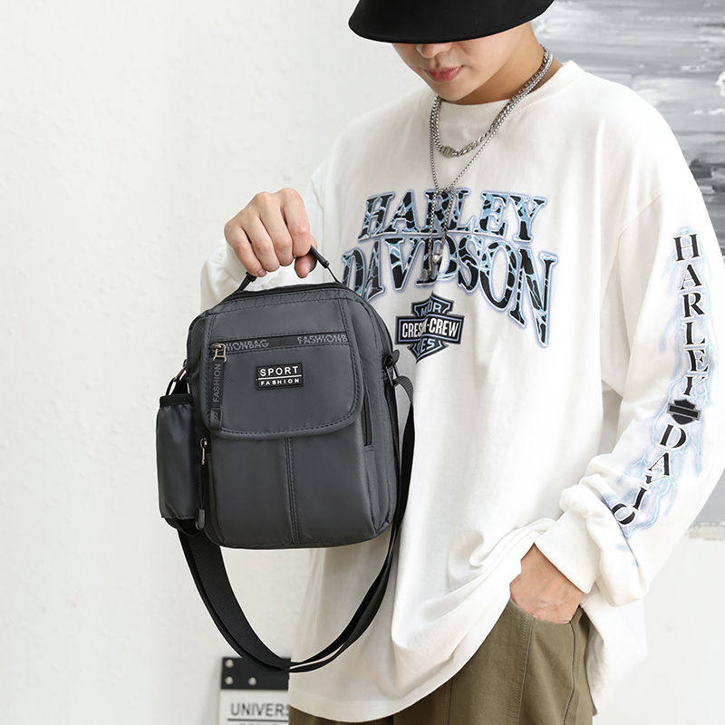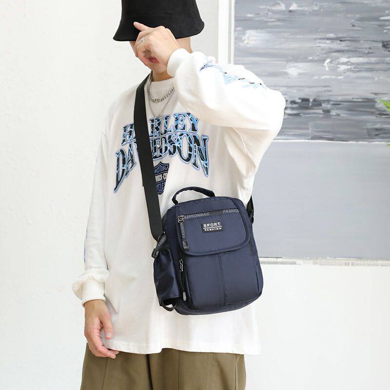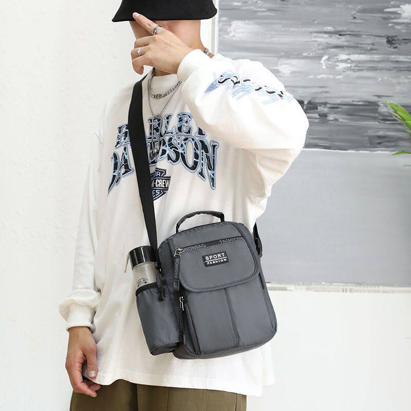 新款单肩包男牛津布斜挎包休闲户外旅游竖款手提小包商务水杯袋男