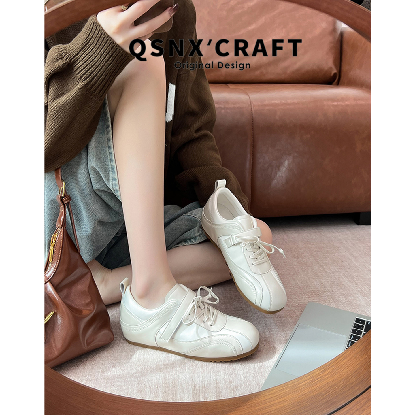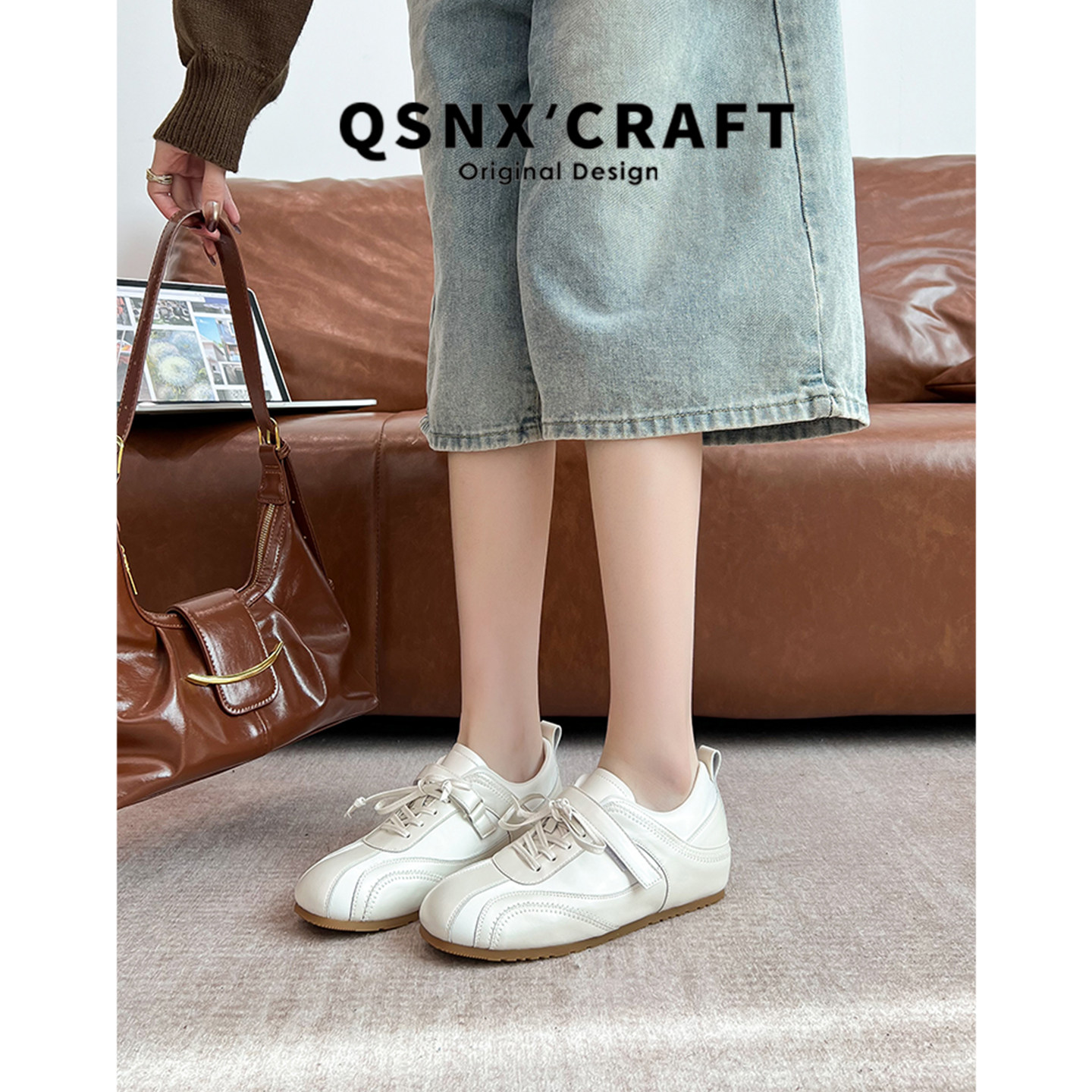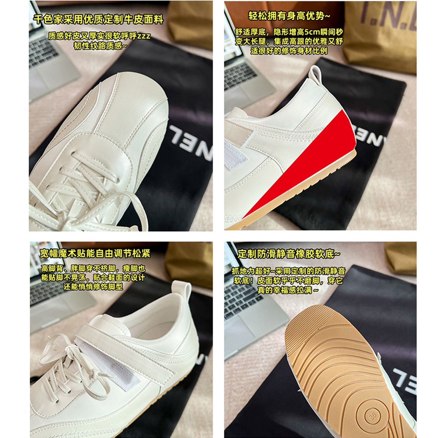 牛皮版~内增高德训鞋女2026新款绸缎魔术贴休闲运动鞋复古阿甘鞋