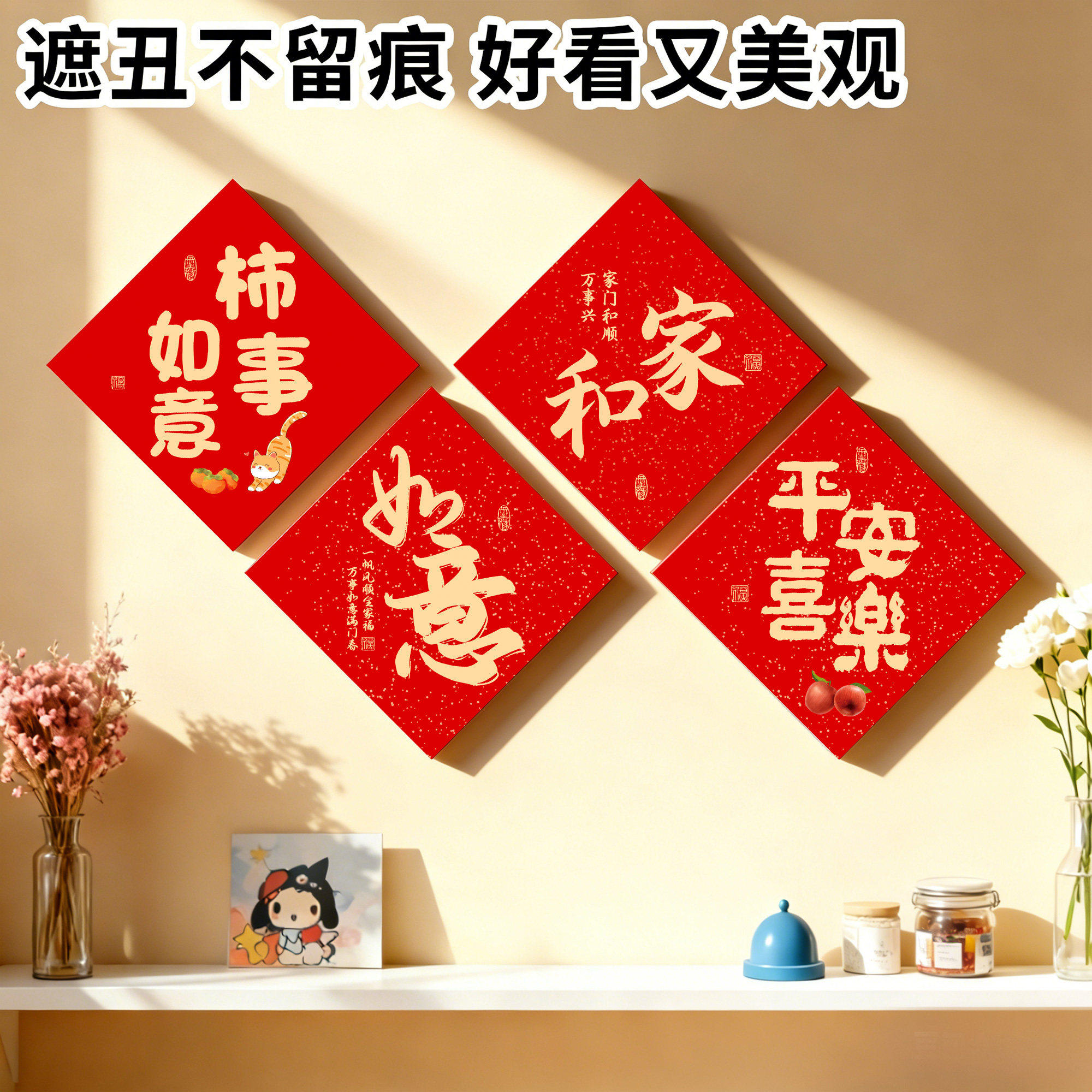 2026新年客厅墙面遮丑补洞装饰贴纸卧室房间门上遮挡窟窿孔洞神器