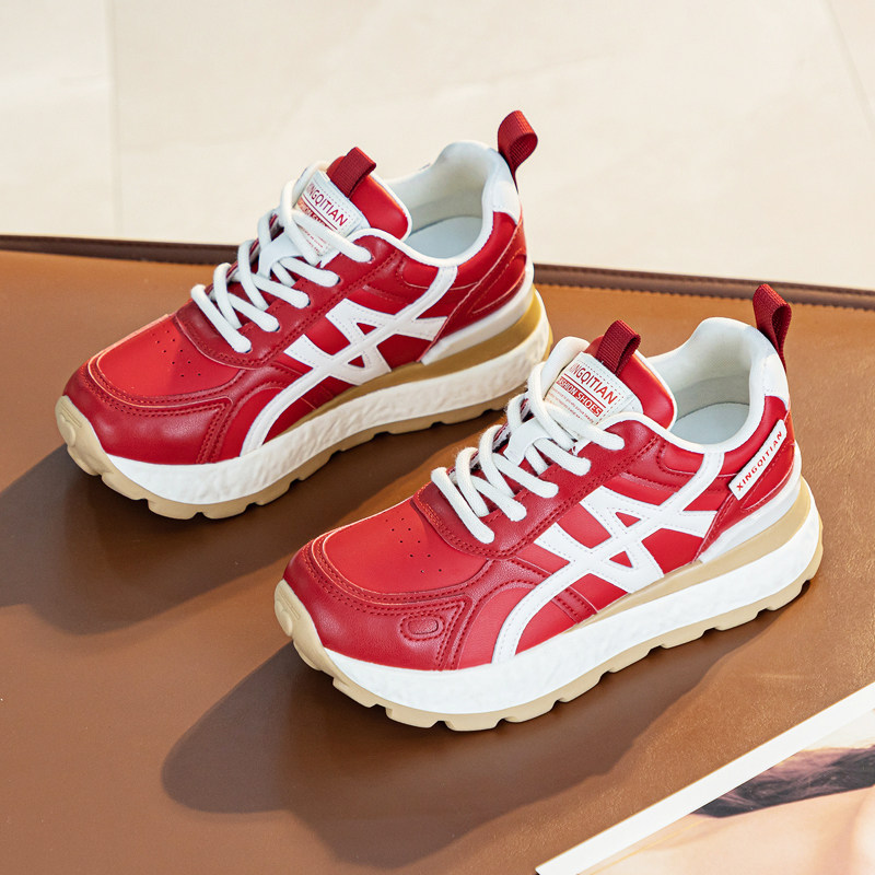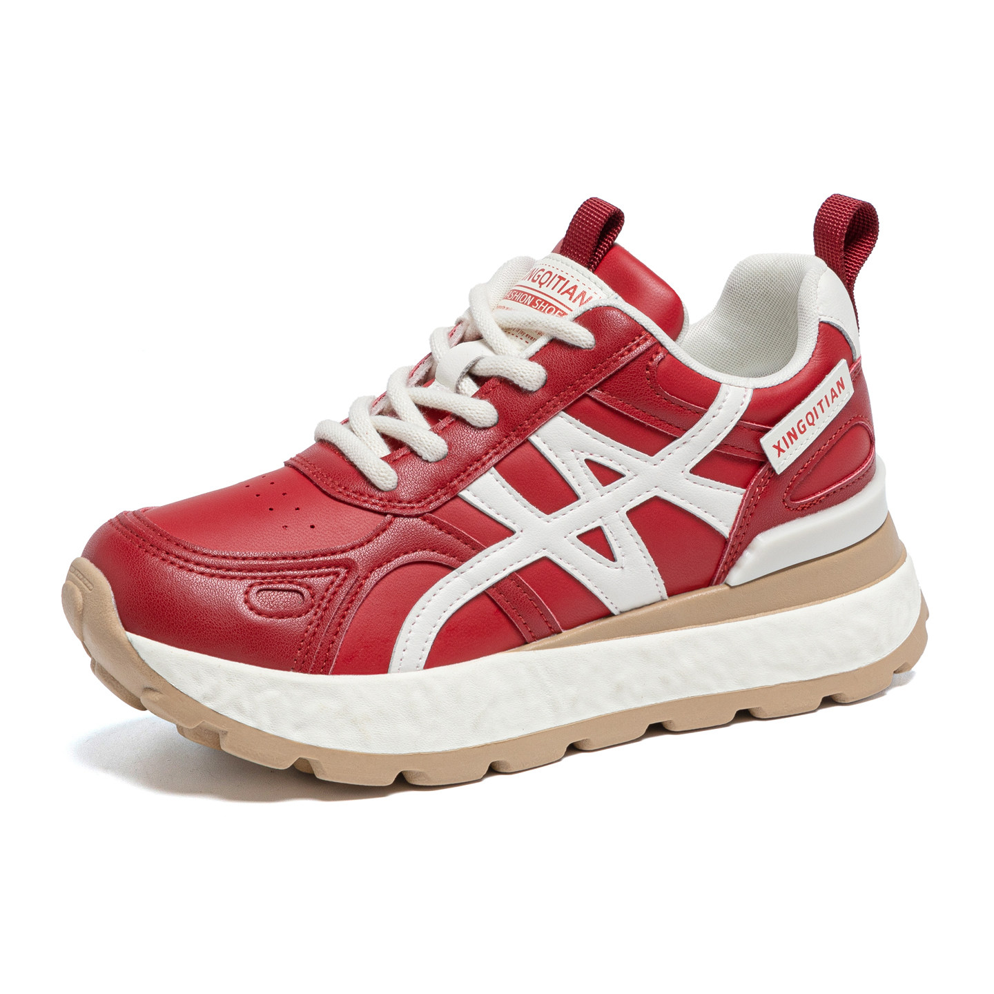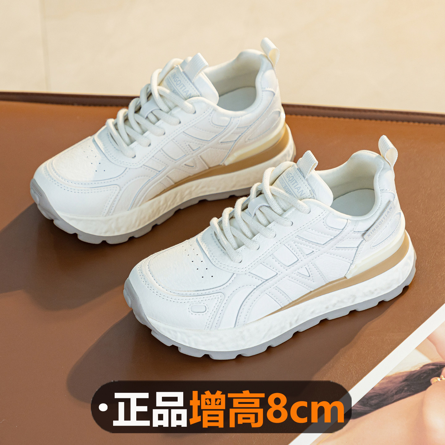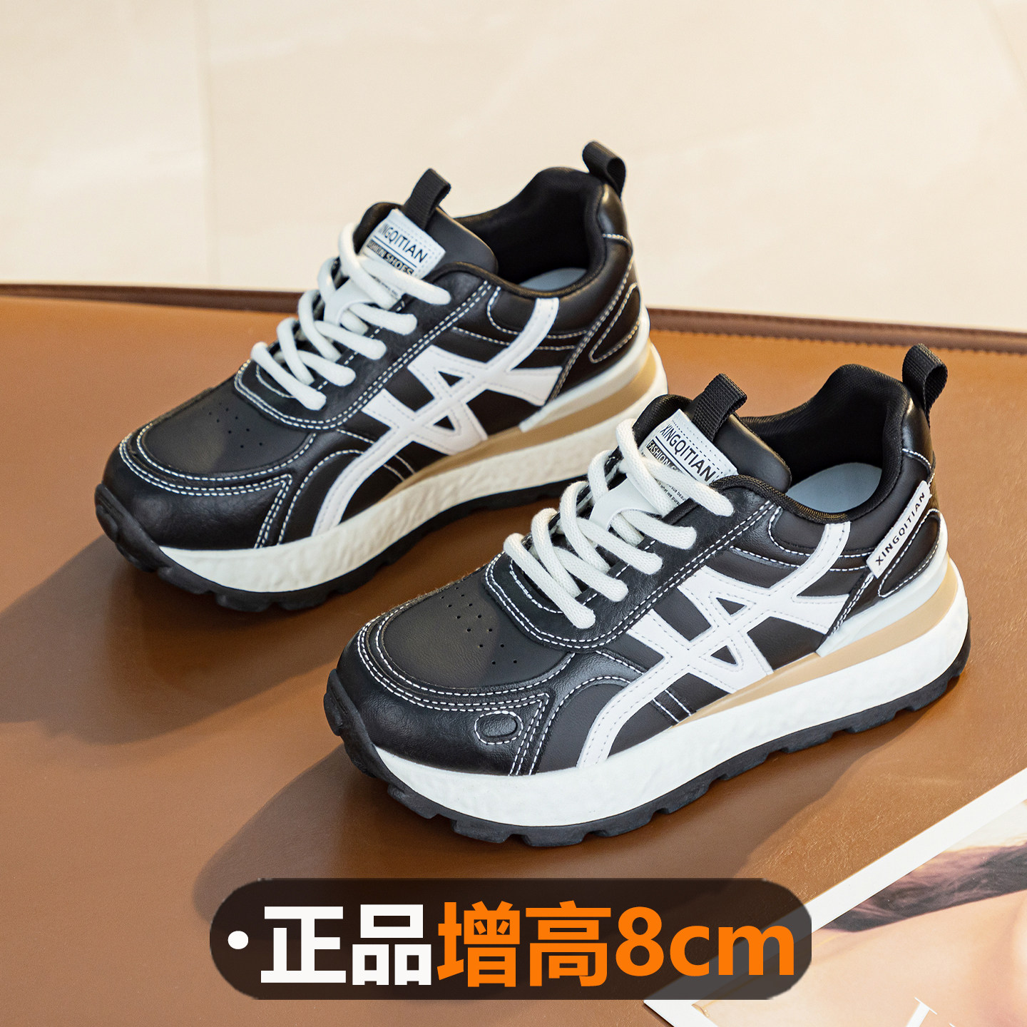 皮面超轻内增高运动女鞋8cm红色阿甘鞋女2026新款春季舒适旅游鞋