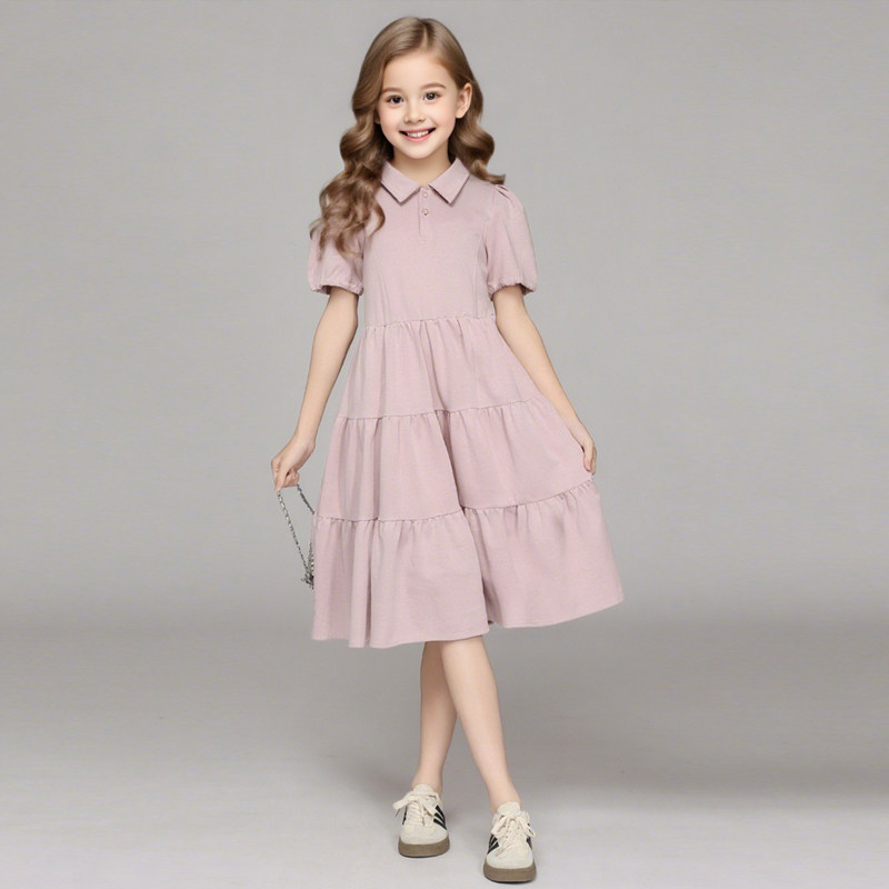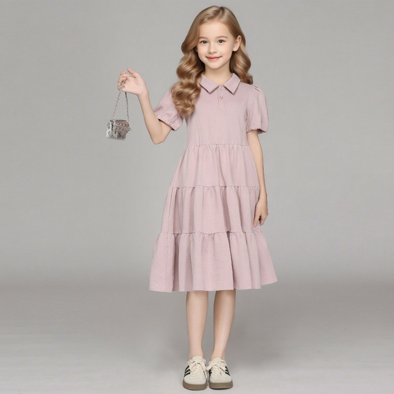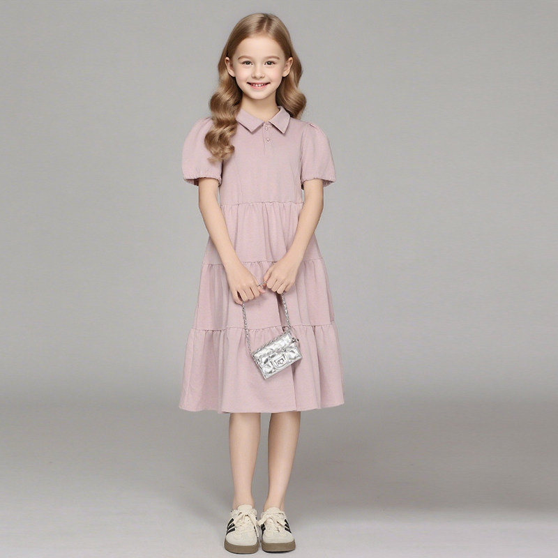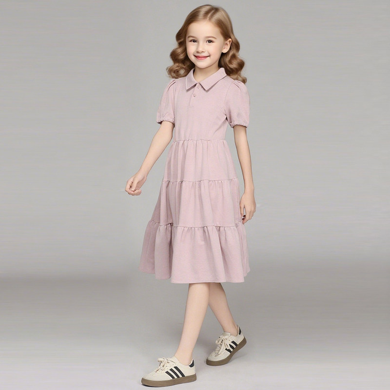 纯棉polo衫女童夏薄款裙子大童初中生2025新款儿童连衣裙宽松粉色