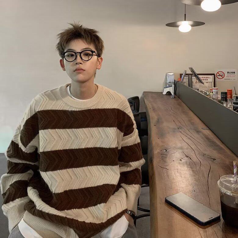 潮流时尚麻花毛衣男女款秋冬季宽松慵懒风美式打底圆领针织衫外套
