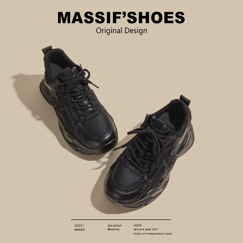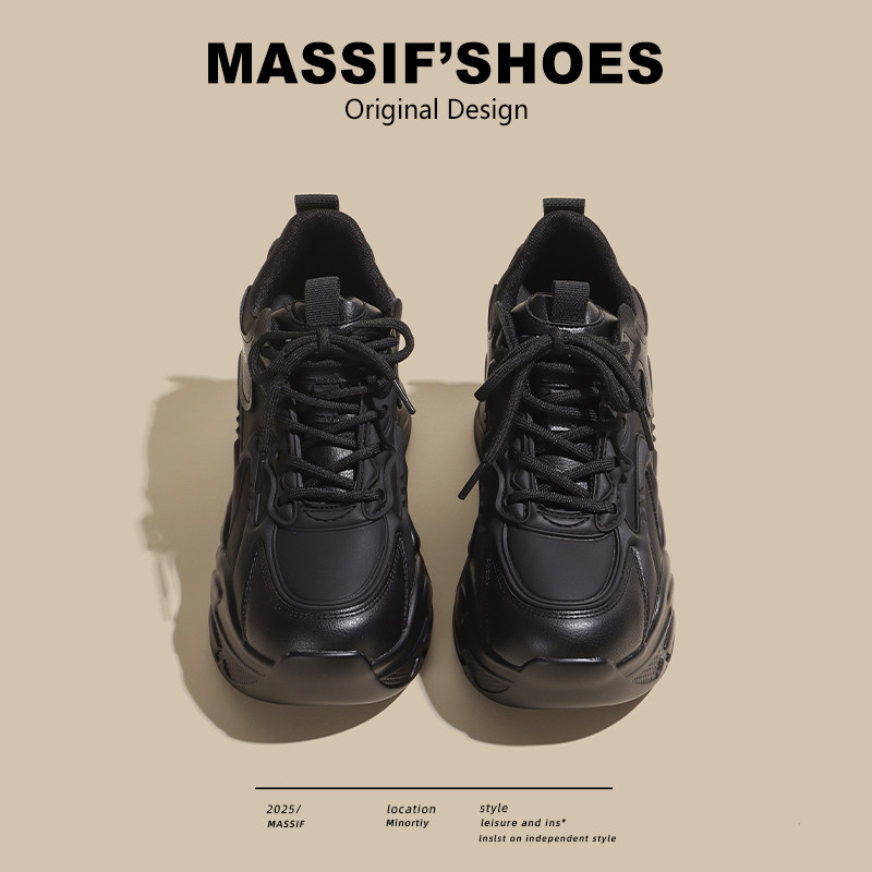 9cm内增高真皮老爹鞋女2026新款春小个子厚底爆款休闲运动小白鞋