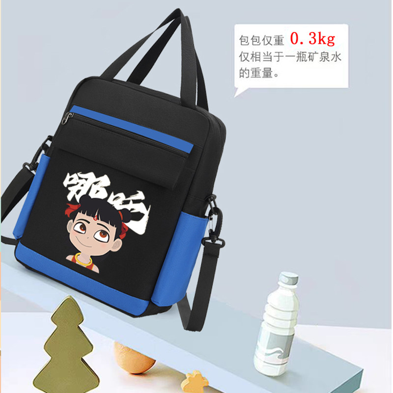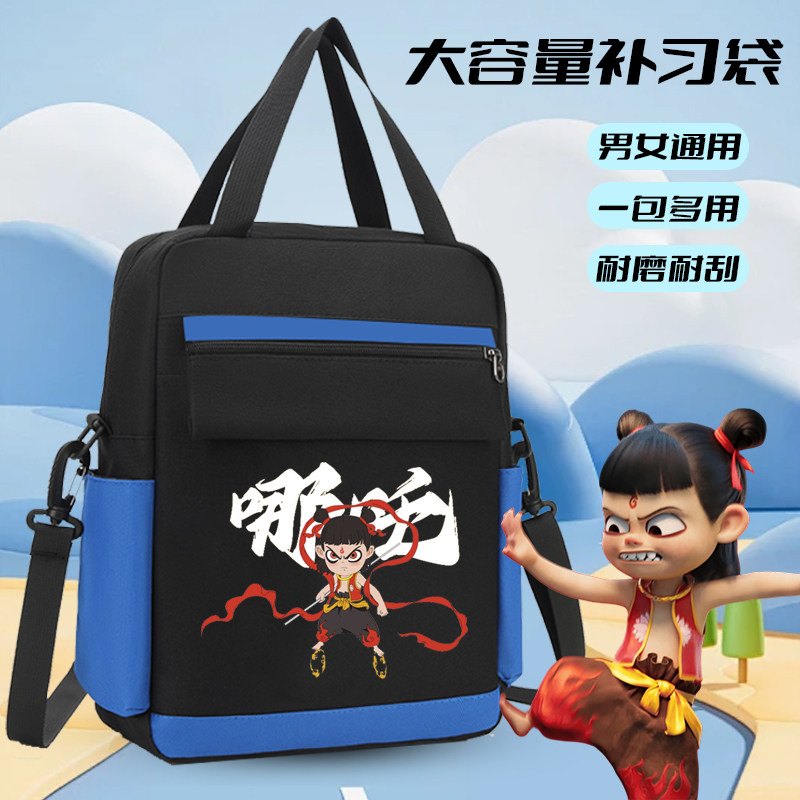 哪吒新款小学生补习袋帆布手提拎书袋男女孩斜挎包大容量上课补课