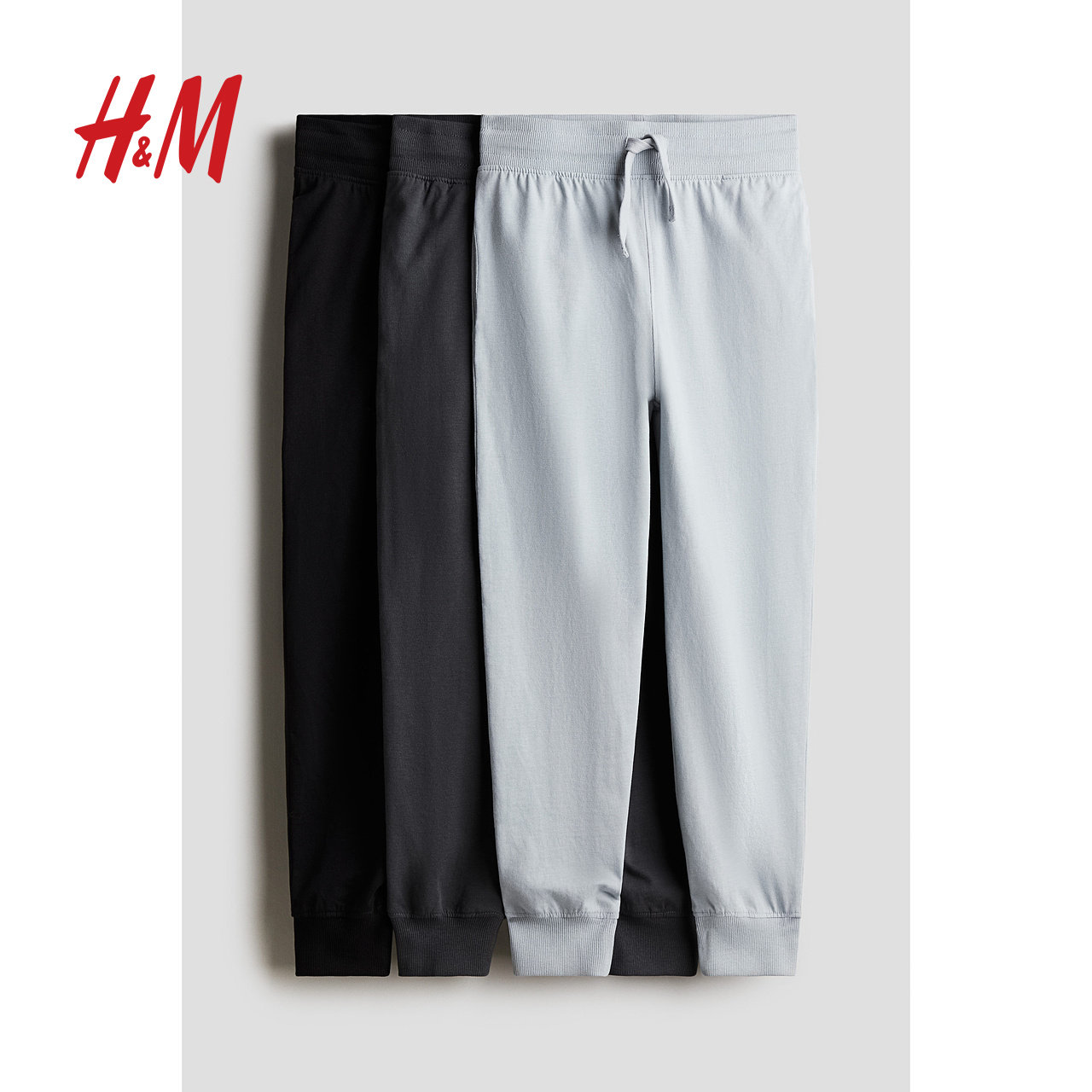 HM童装儿童男童裤子3条装春季时尚舒适棉质汗布慢跑裤0763194