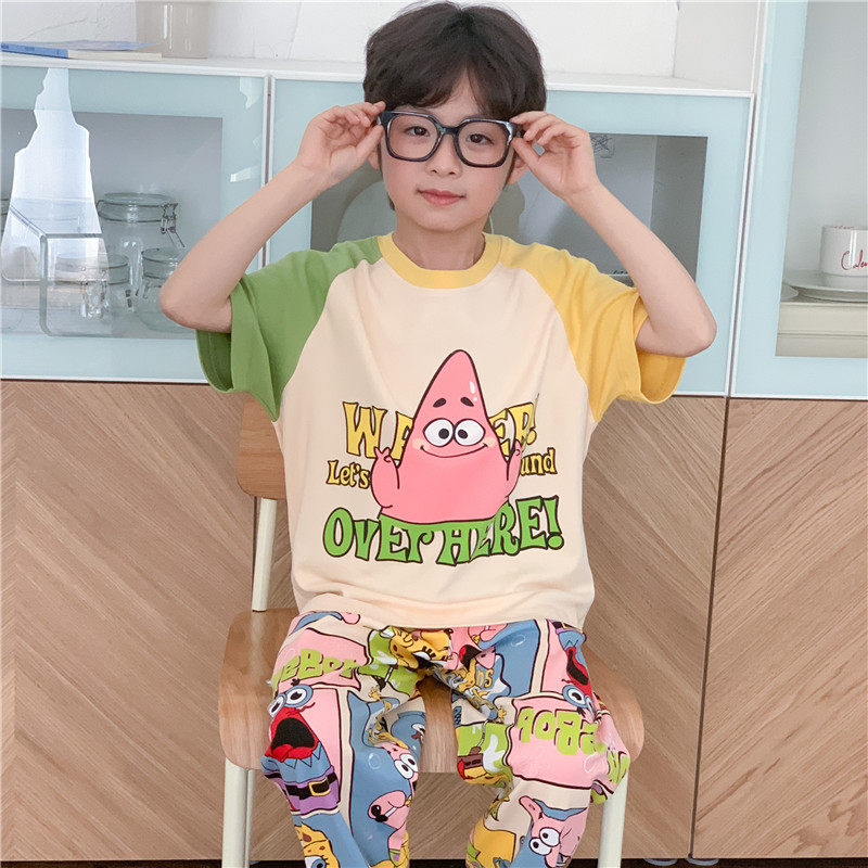 儿童睡衣男孩夏季薄款纯棉短袖长裤大童青少年初中学生家居服套装