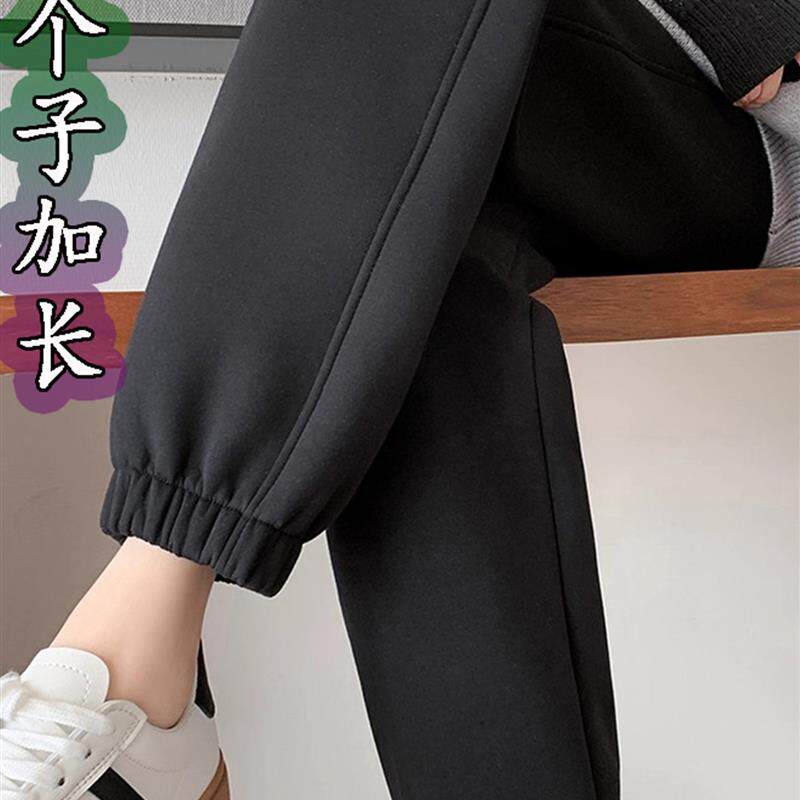 高个子加长裤子加绒灰色运动裤女冬季新款加厚高腰羊羔绒束脚棉裤